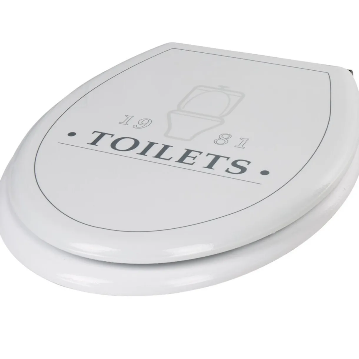 Apportez une touche de design urbain dans vos toilettes avec cet abattant WC blanc inscriptions « 1981 TOILETS » équipé d’un frein de chute.
