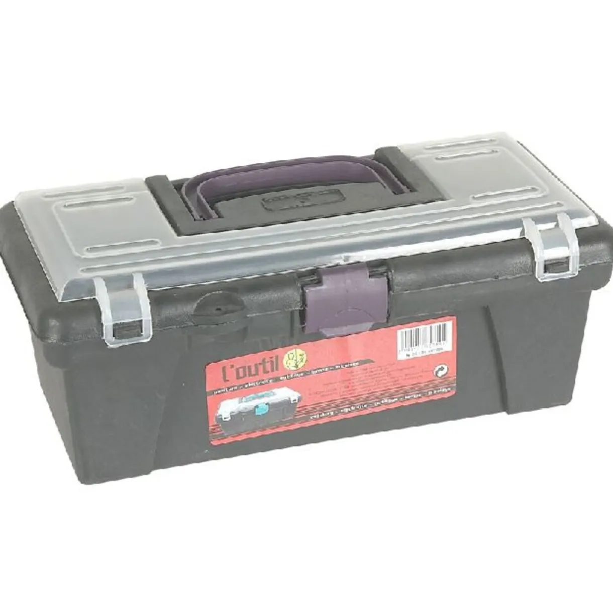 Boîte à outils en plastique, dim. 30x14x11,5 cm, organiseur sur la partie supérieure.