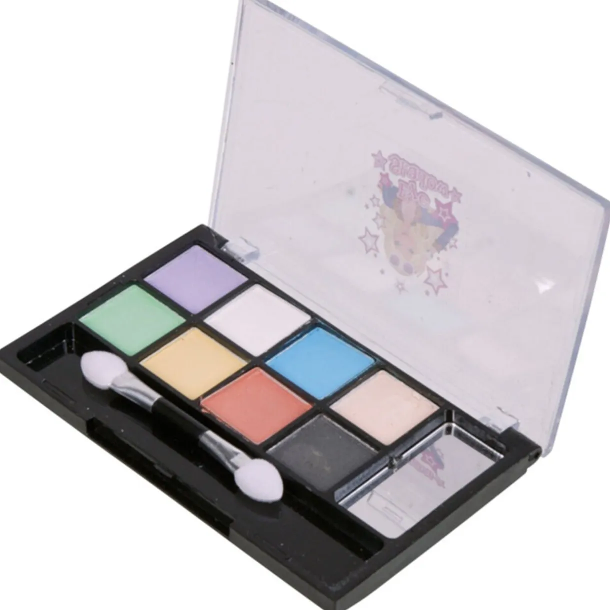 Palette 8 fards à paupières, dim. 10×6 cm, pinceau inclus. Dès 5 ans.
