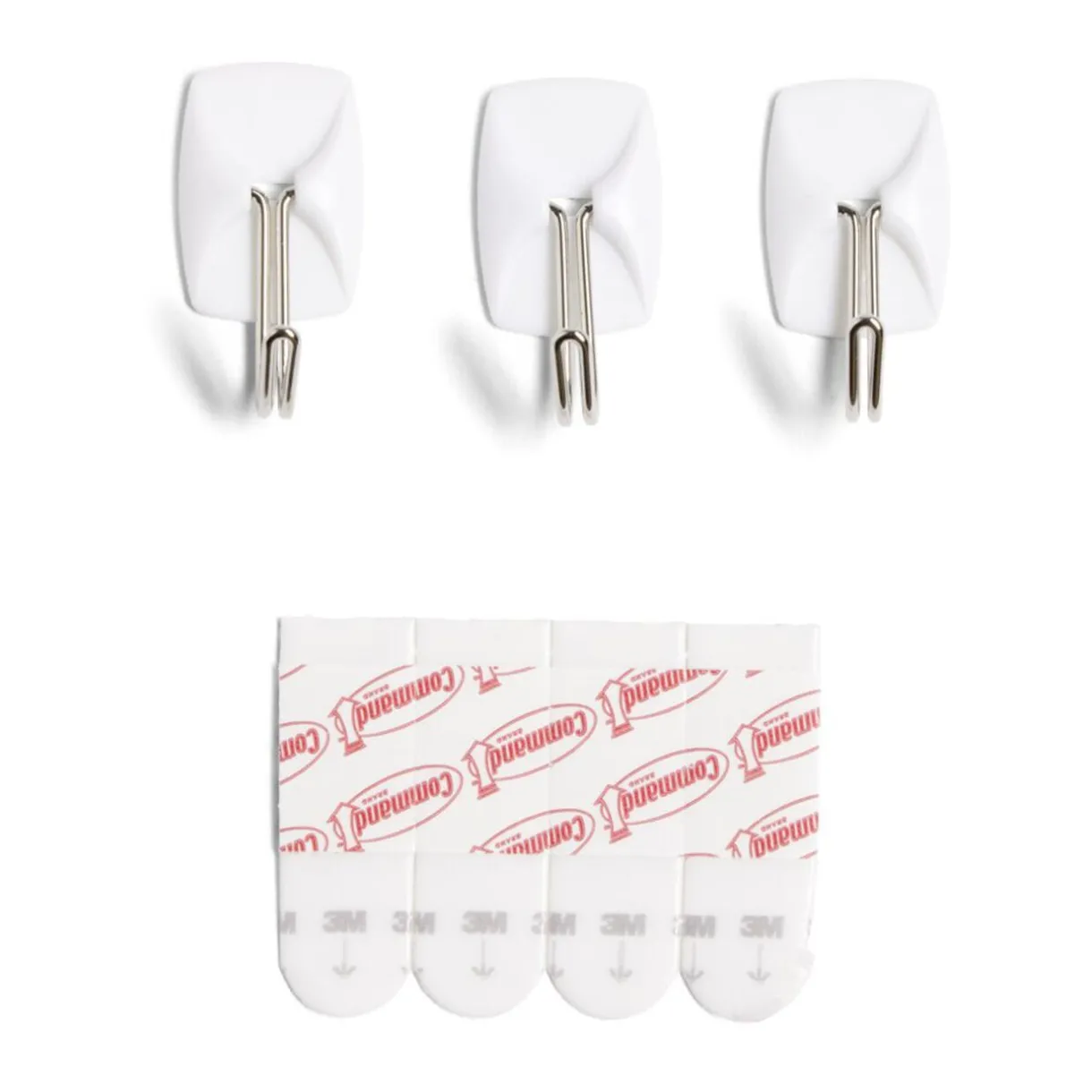 Lot de 3 crochets adhésifs en plastique blanc avec pointe en métal.