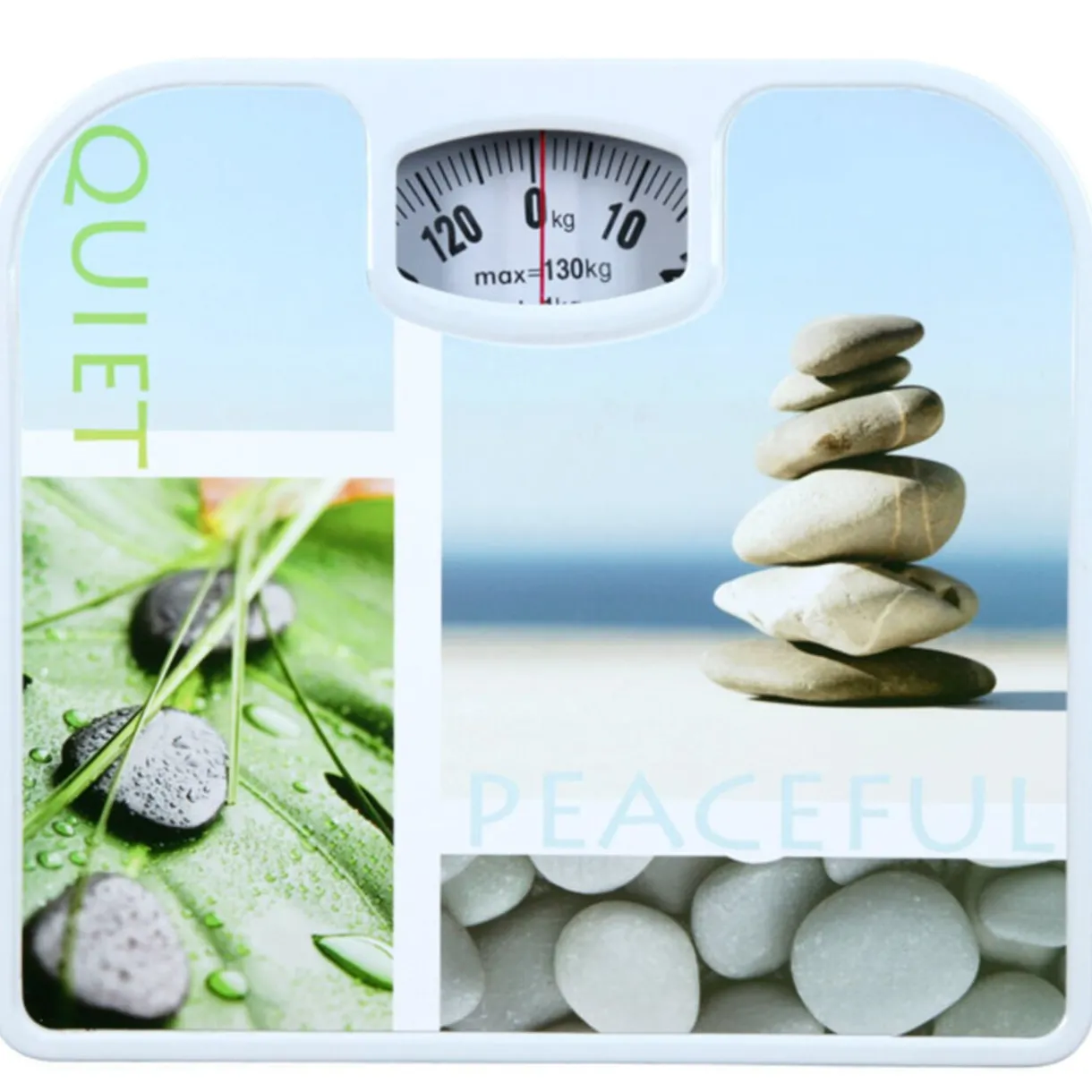 Pèse-personne mécanique « Peaceful », dim. 25x4x25 cm, métal et plastique.
