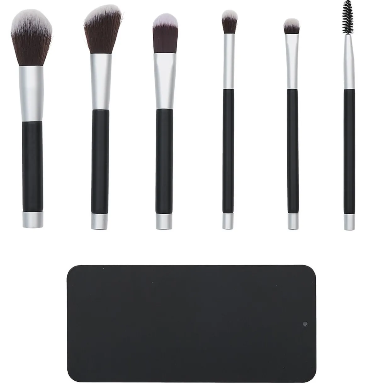 Set de 6 pinceaux à cosmétiques avec support magnétique. Pratique, les pinceaux s’aimantent au support pour simplifier le séchage après les avoir nettoyés.