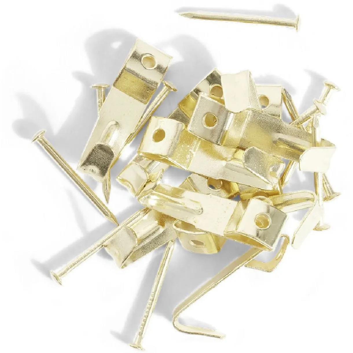 Lot de 10 crochets en acier laitonné avec aiguilles N°1 pour fixer des tableaux et cadres légers au mur.
