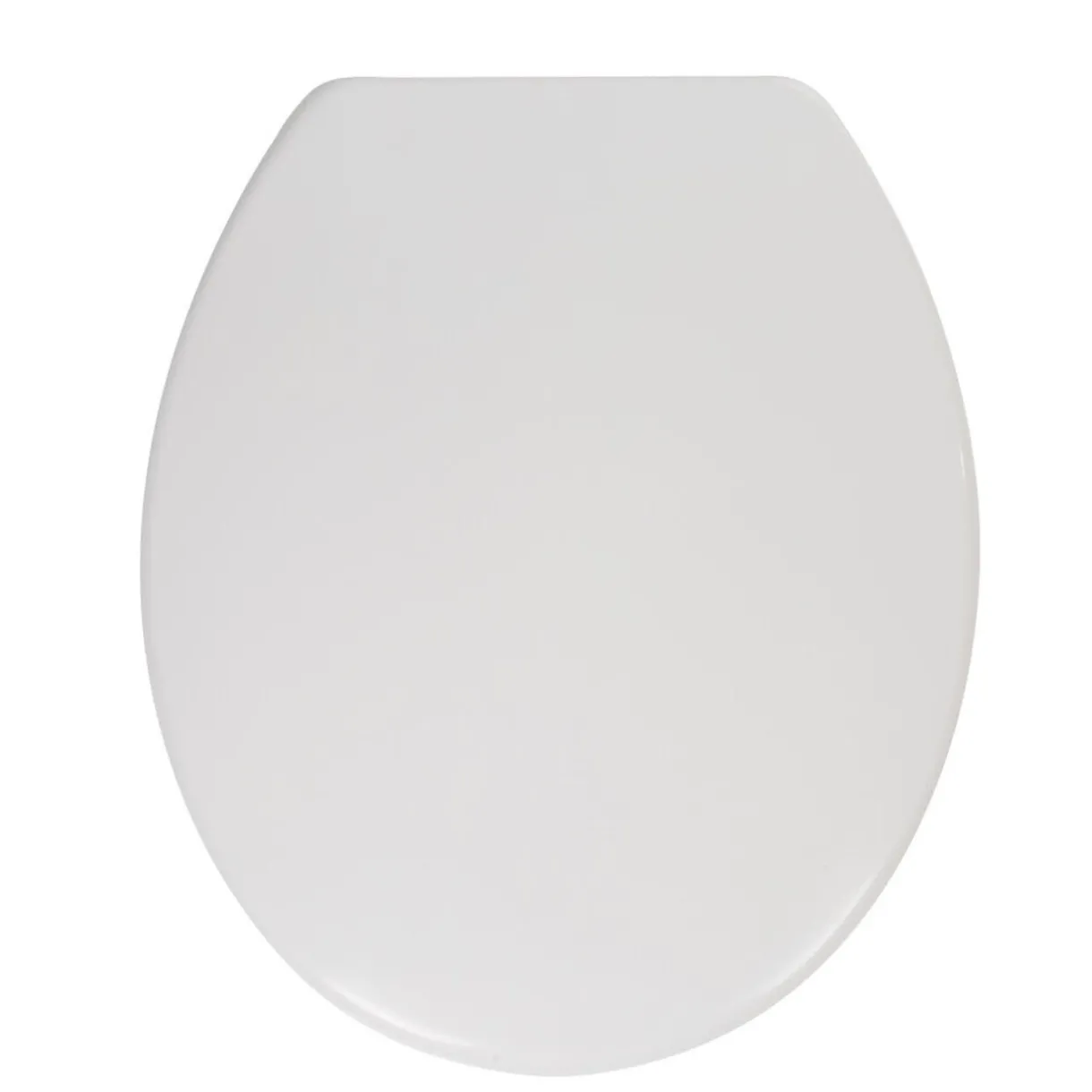 Abattant WC blanc avec frein de chute, ultra résistant grâce à sa matière en plastique dur.