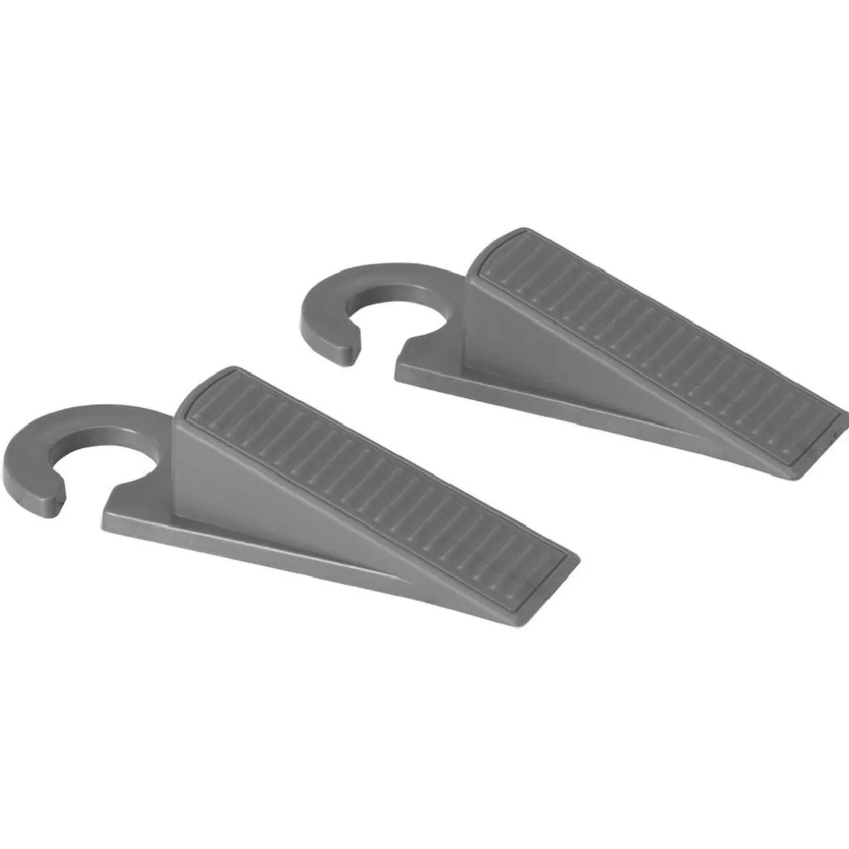 Lot de 2 bloc-porte avec crochets pour le suspendre à la poignée lorsqu’il n’est pas utilisé.