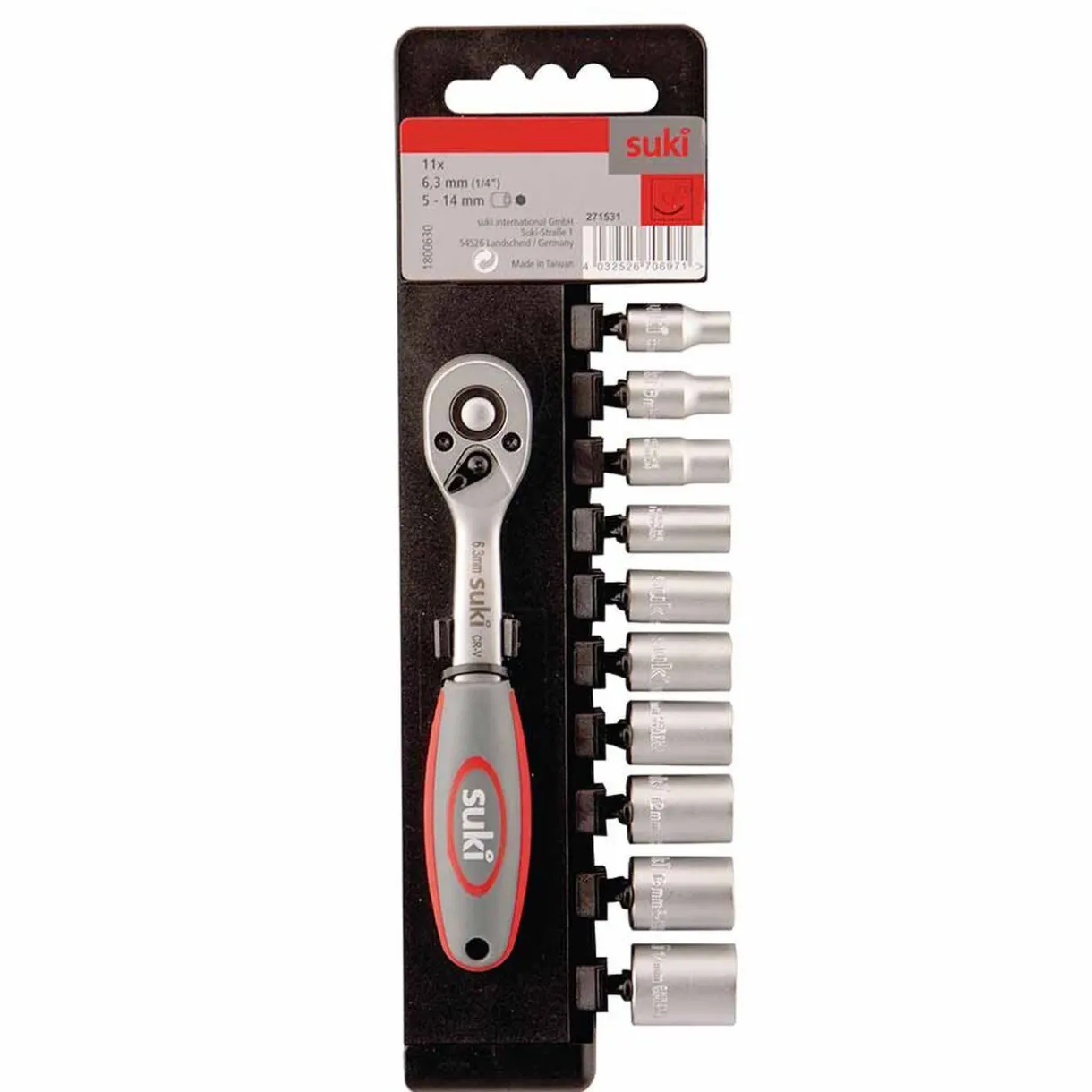 Clé à mécanisme cliquet 1/4″ Suki réversible avec 72 dents vous permettant un déverrouillage des douilles rapide et un serrage plus précis.