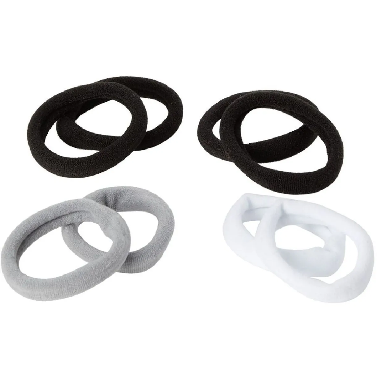 Lot de 6 élastiques en mousse de couleur noir, marron beige clair et beige foncé.