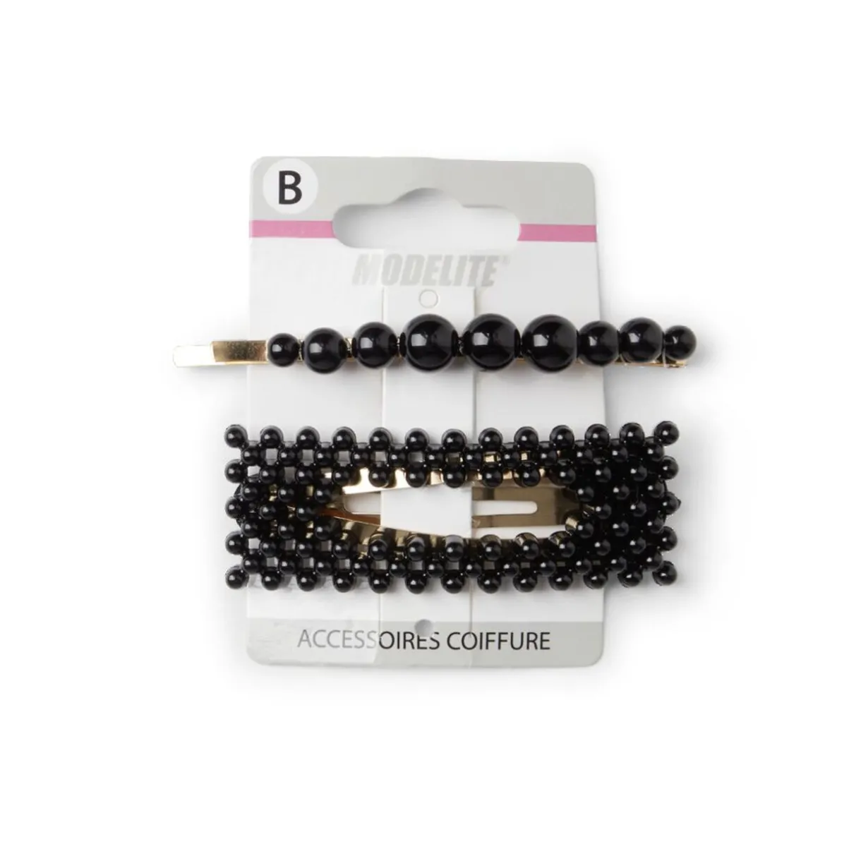 Lot de 2 barrettes à cheveux en métal doré, ornées de perles en plastique noires pour une touche d’élégance intemporelle.