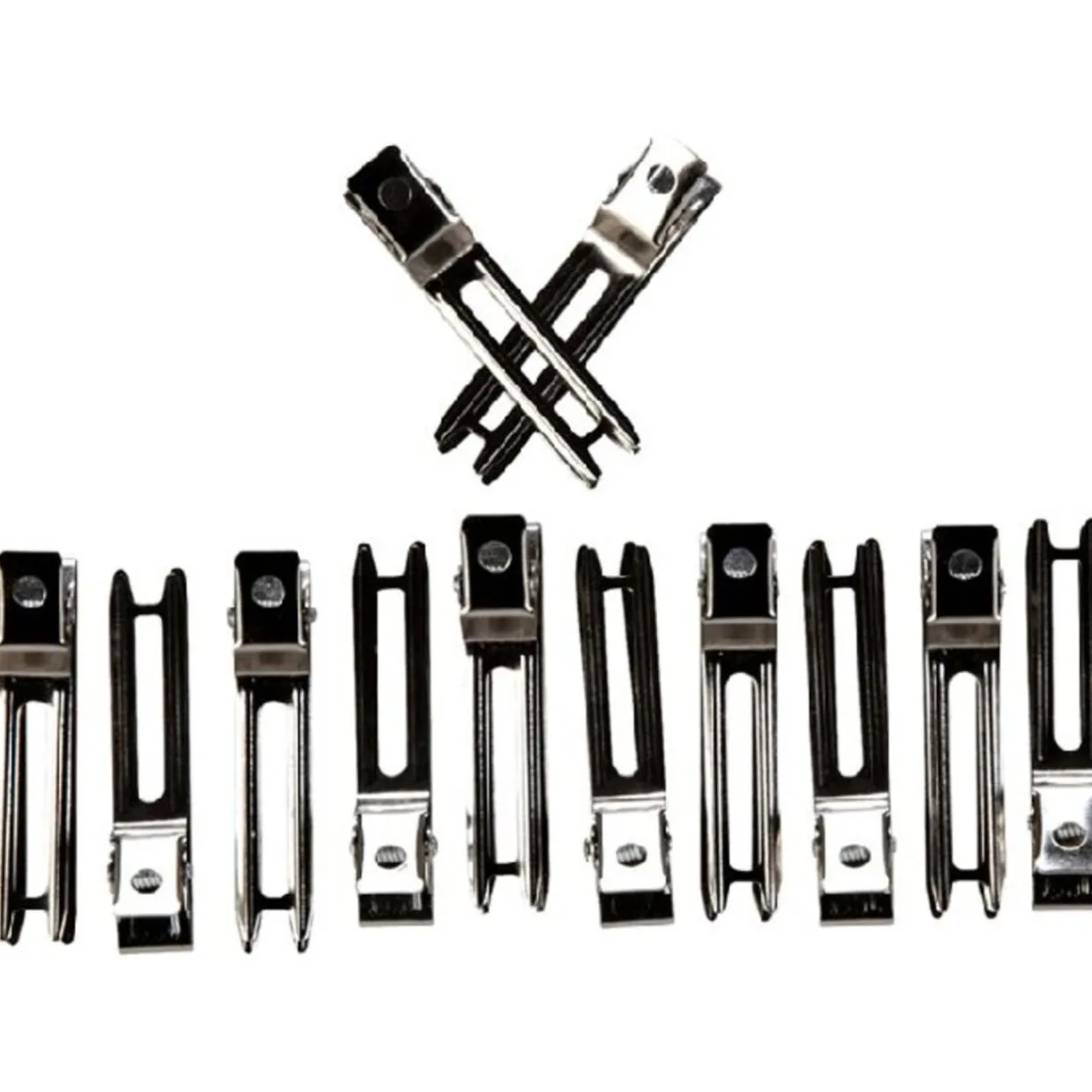 12 pinces de coiffeur de L. 4,5 cm, métal.