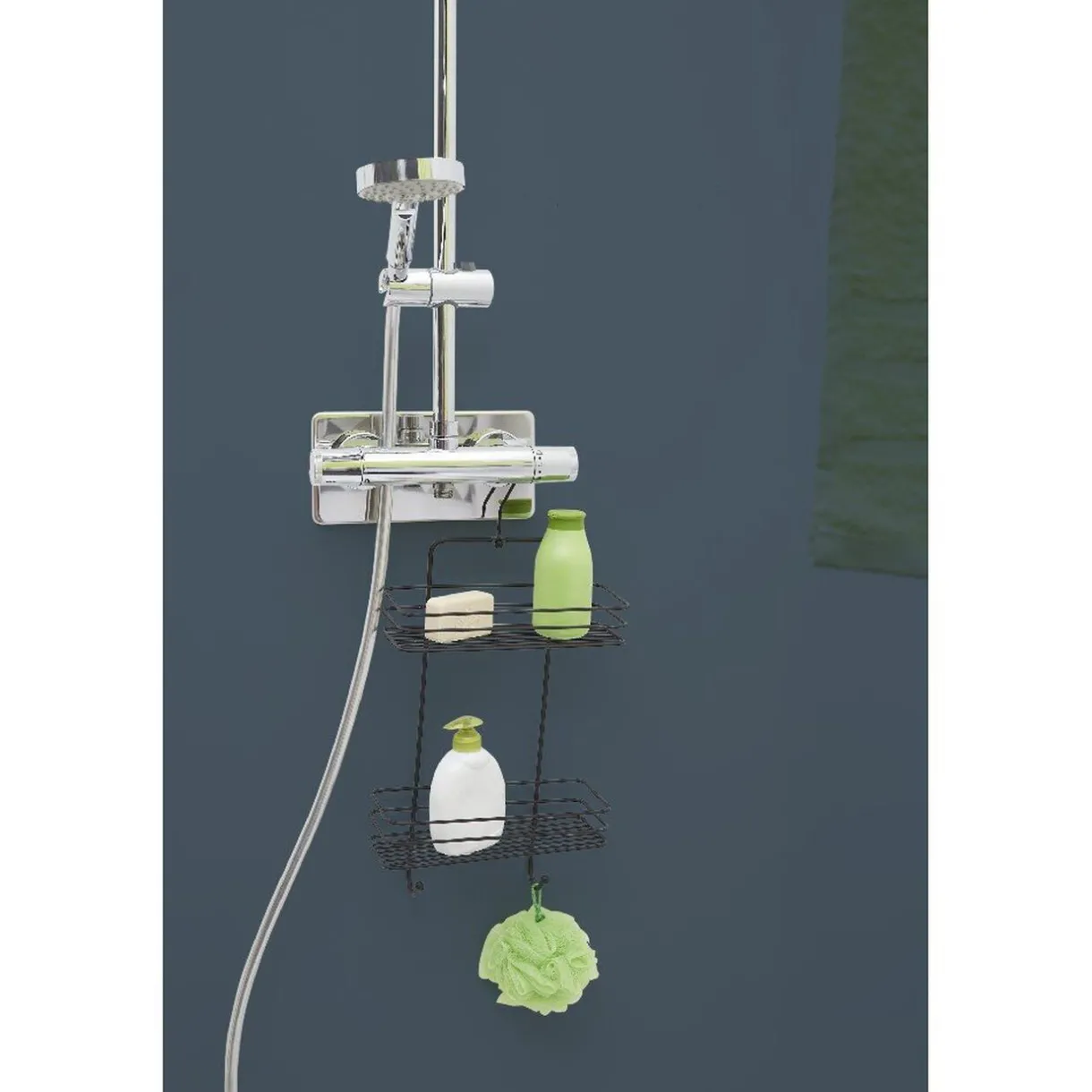 Serviteur de douche en métal noir mat composé de 2 panières et 2 crochets de suspension.