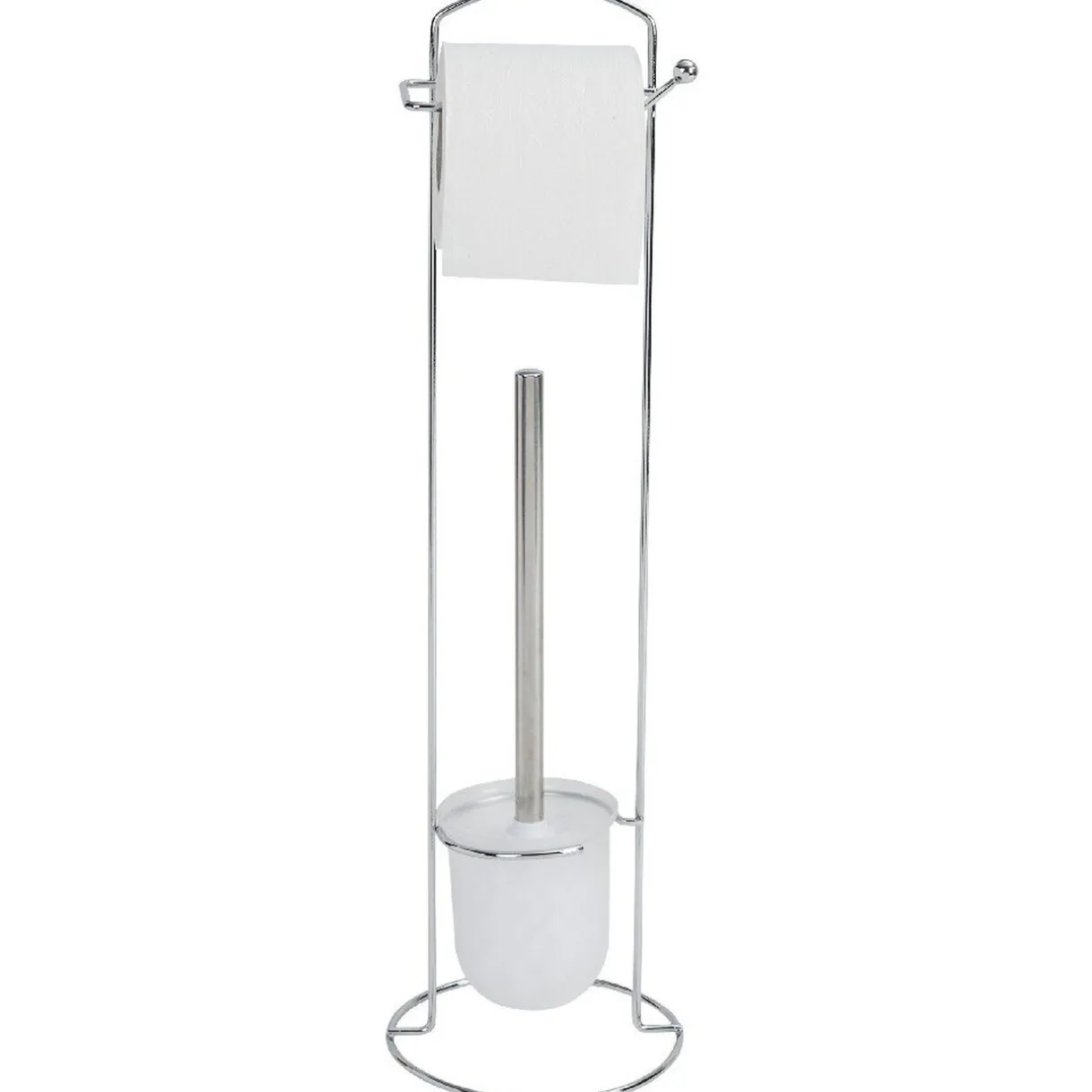 Serviteur pour papier WC en métal avec brosse et support intégré