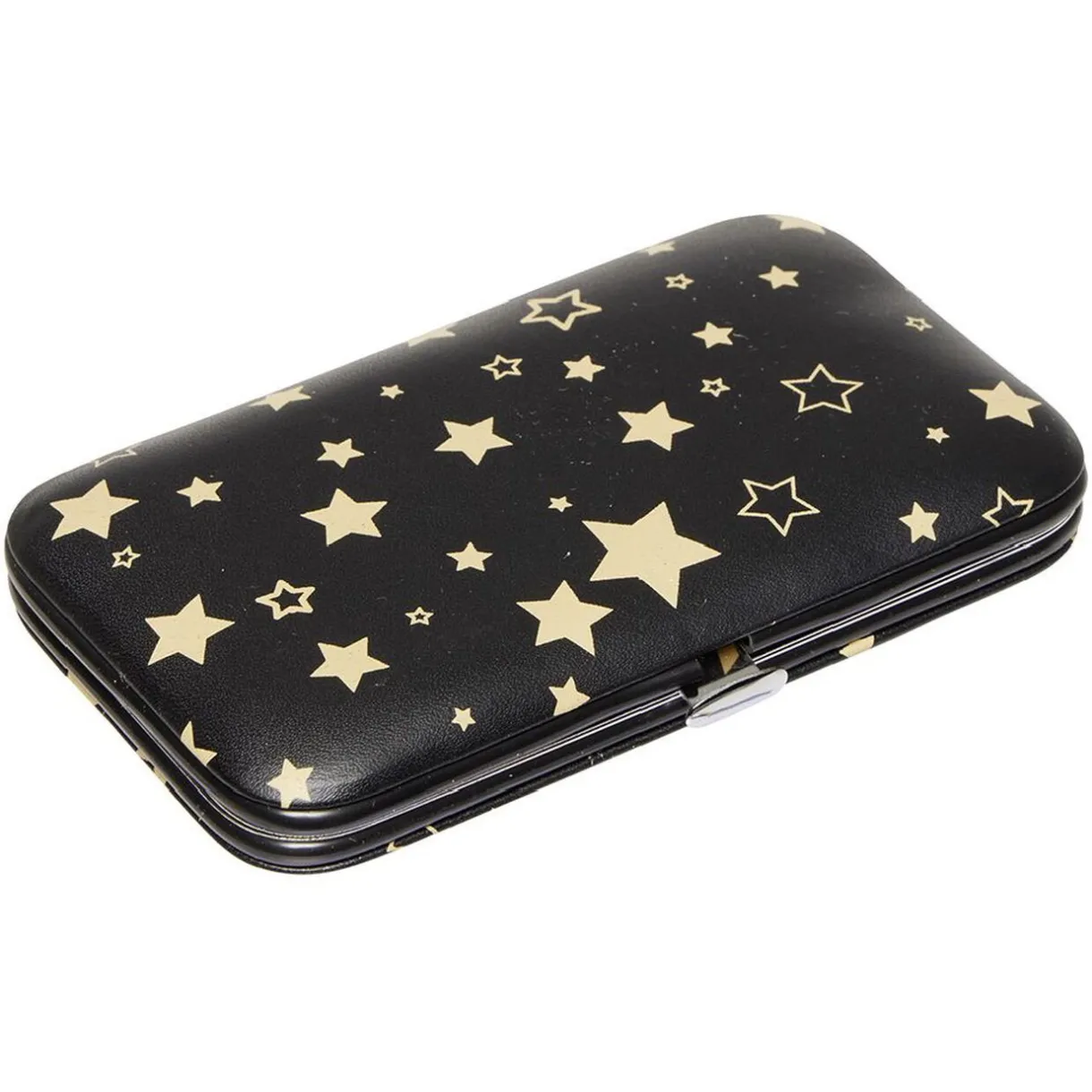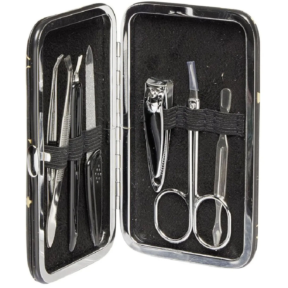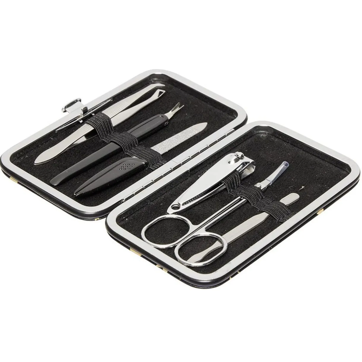 Pratique pour emporter partout. Contient un ciseau, un coupe ongle, une lime, un pousse cuticule, un coupe cuticule et une pince à épiler