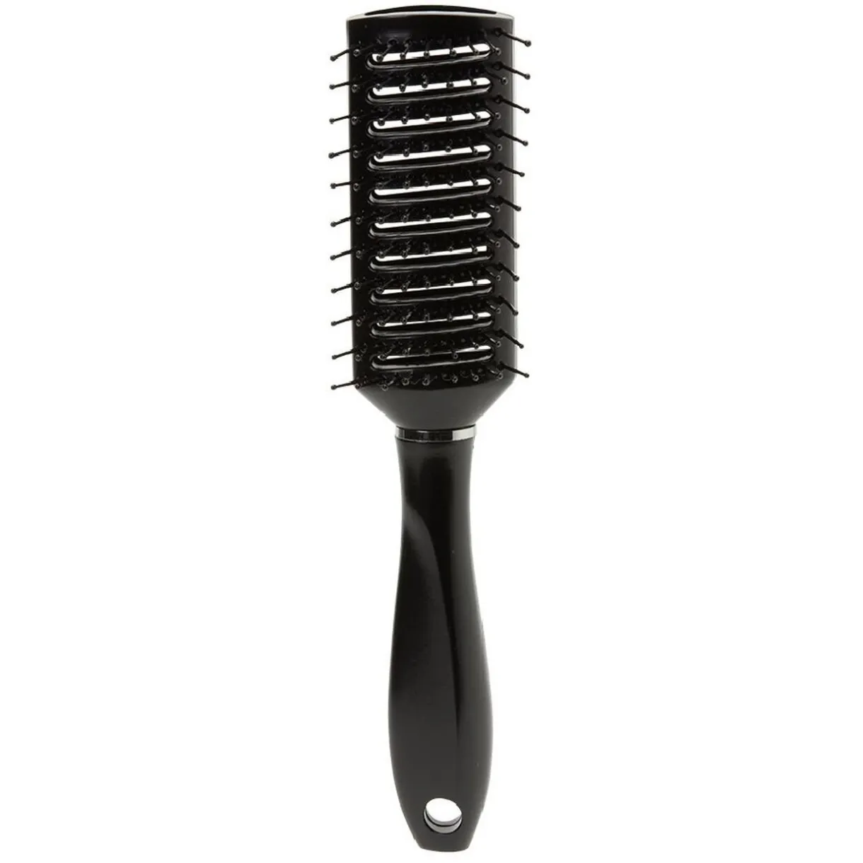 Brosse tunnel multi-usages avec picots en pvc perlés noir pour le démêlage et lissage de tous types de cheveux.