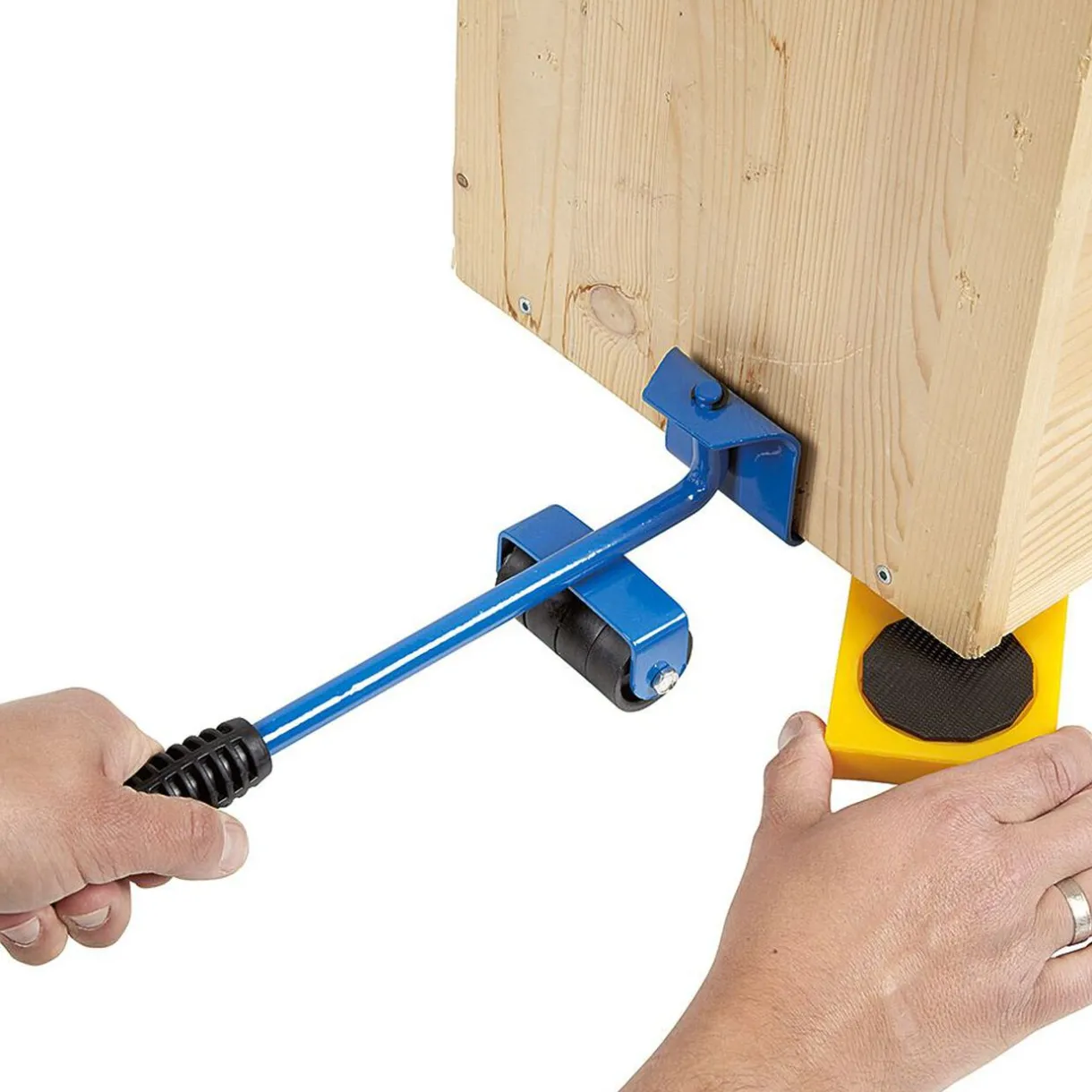 Comprend : 1 levier lève-meuble de 70 kgs maximum et 4 patins jusqu’à 150 kgs.