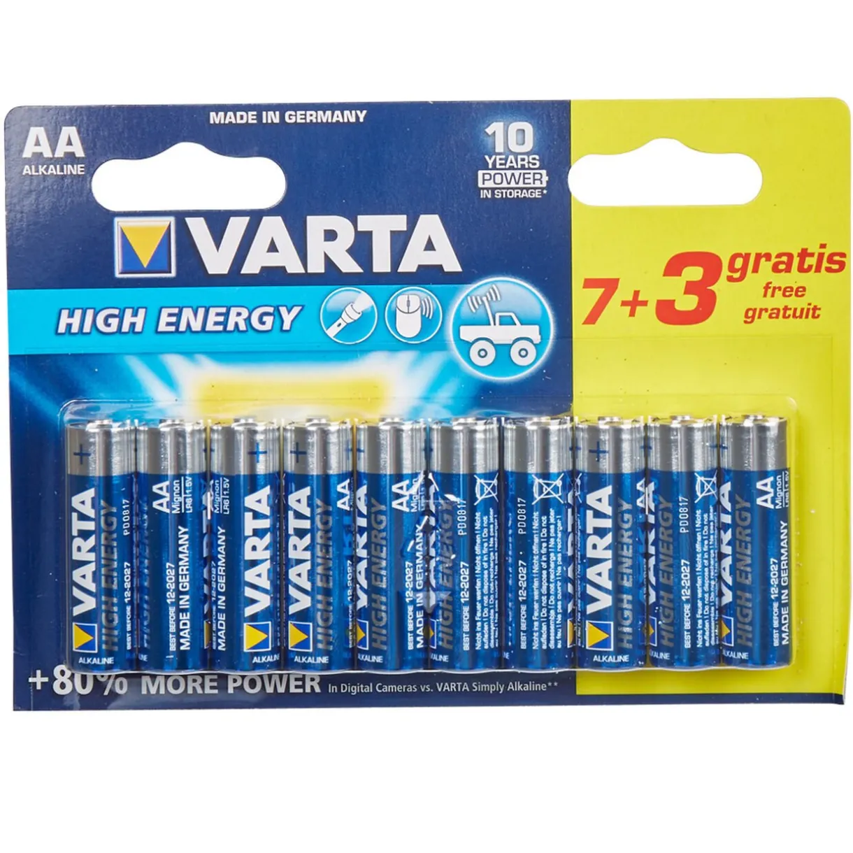 Lot de 10 piles LR06 type AA, alcaline varta.