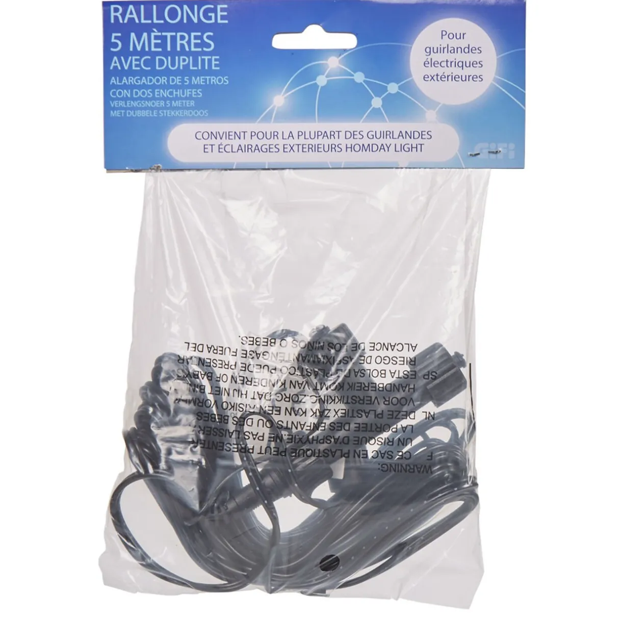 Rallonge de 5 m avec duplite pour guirlandes électriques extérieures, compatible avec la plupart des gurilandes et éclairages extérieurs Homday light.