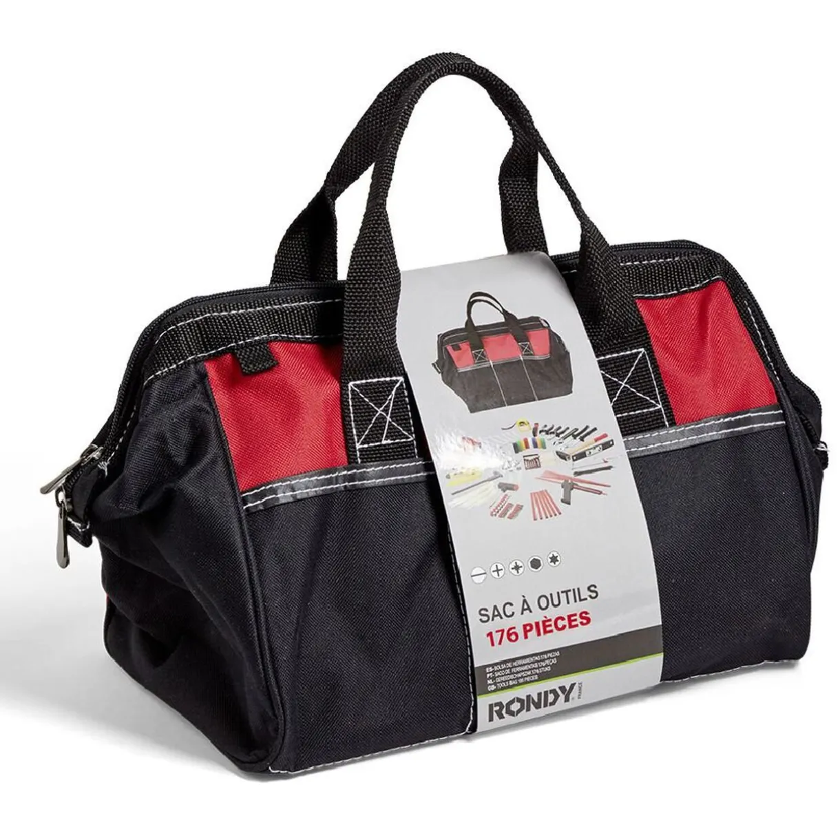 Sac à outils en tissu de la marque Rondy comprenant 176 pièces.