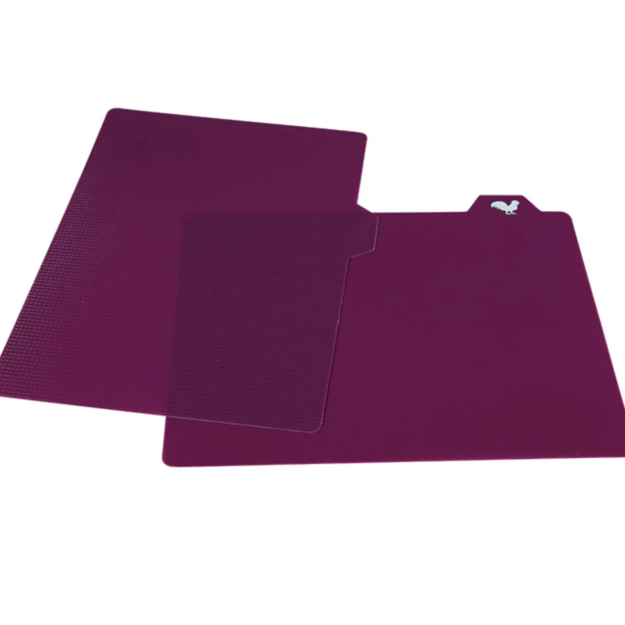 4 planches à découper, dim. 38×28 cm, plastique, antidérapantes. A chaque met sa planche à découper !
