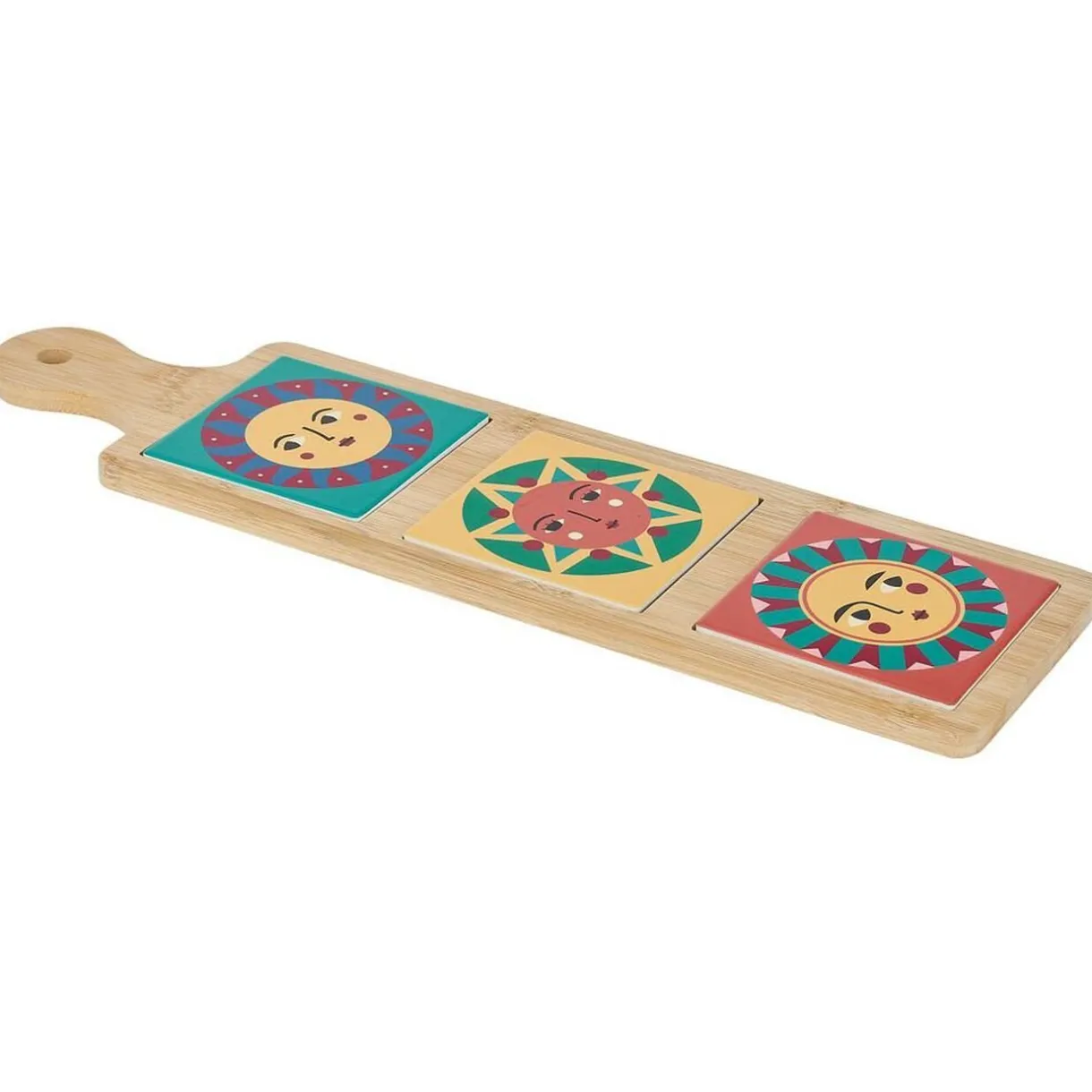 Sa taille généreuse permet de présenter une variété de hors-d’oeuvre, tandis que ses carreaux en céramique ornés de motifs ensoleillés ajoutent une touche de charme estival à votre table.