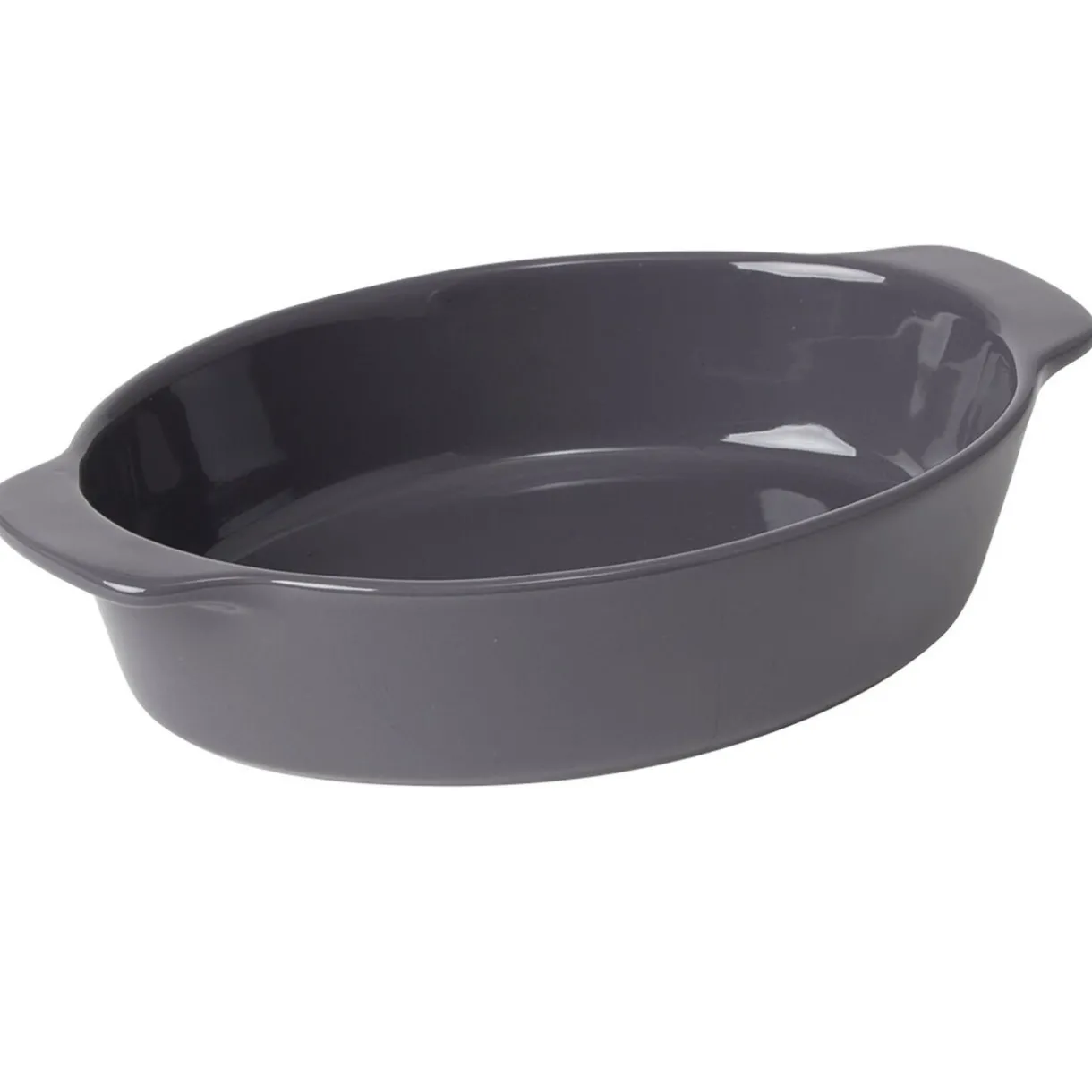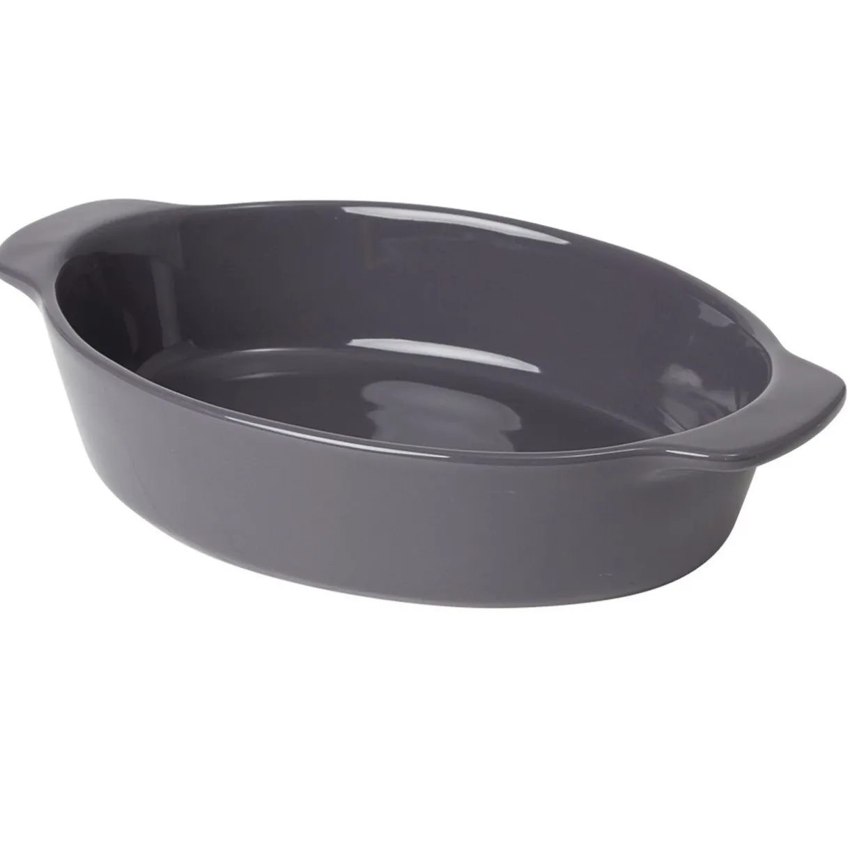 Plat à four ovale en céramique de couleur grise.