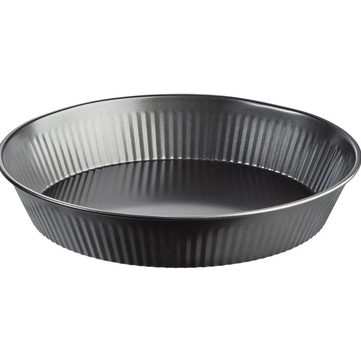 Plat à gâteau en acier gris, idéal pour cuire vos pâtisseries et les transporter facilement grâce à son couvercle.