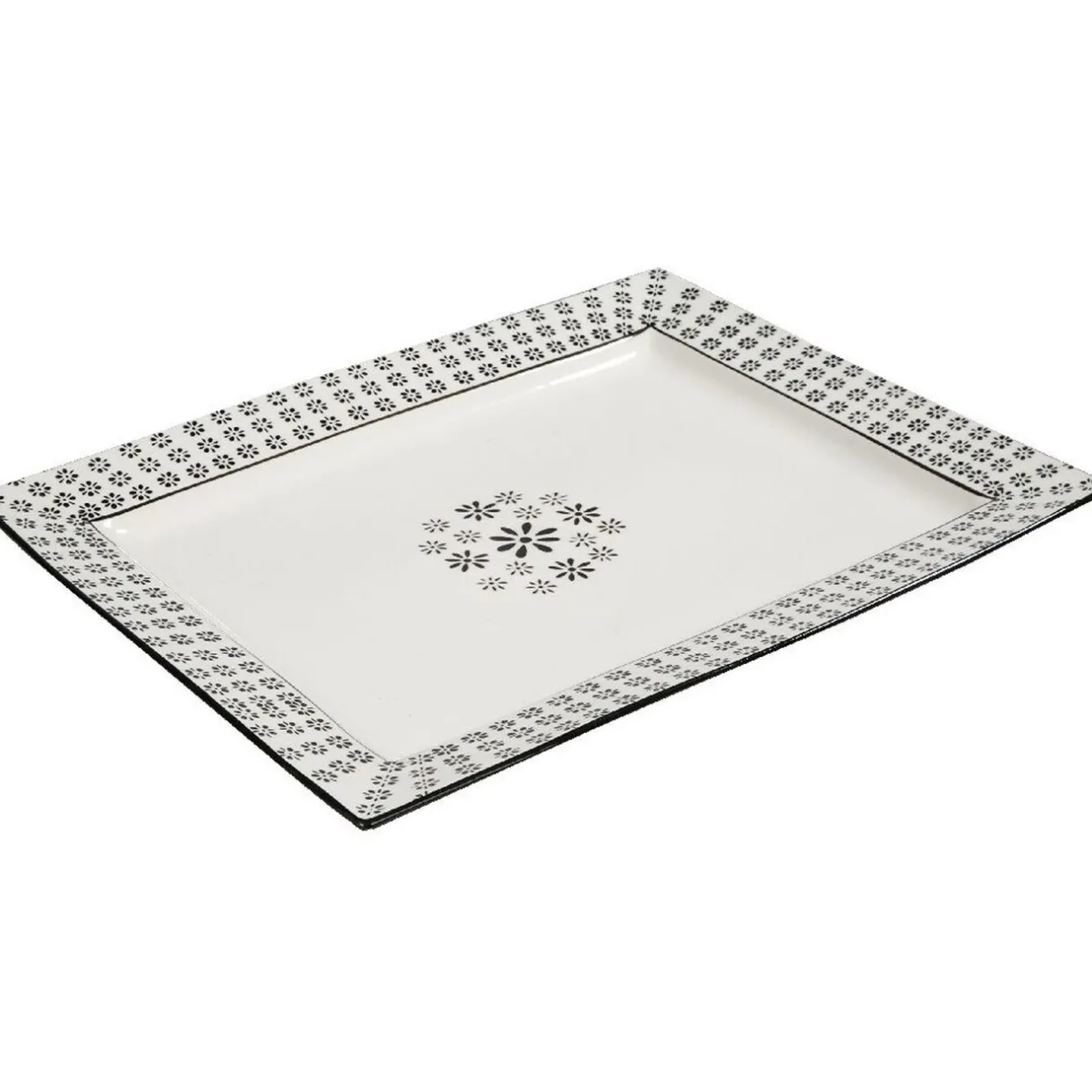 Plat à servir blanc à motifs noirs de la collection Jaya.