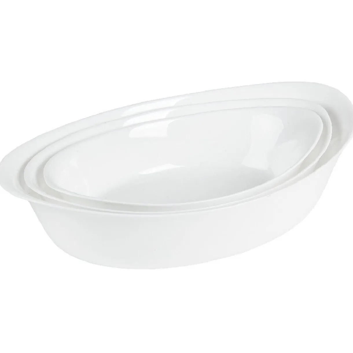 Cuisinez pour vous, pour 2, pour 4 ou pour 6 avec ces 3 plats ovale en verre léger et résistant de dimensions différentes pour faire plaisir à tous les gourmands.