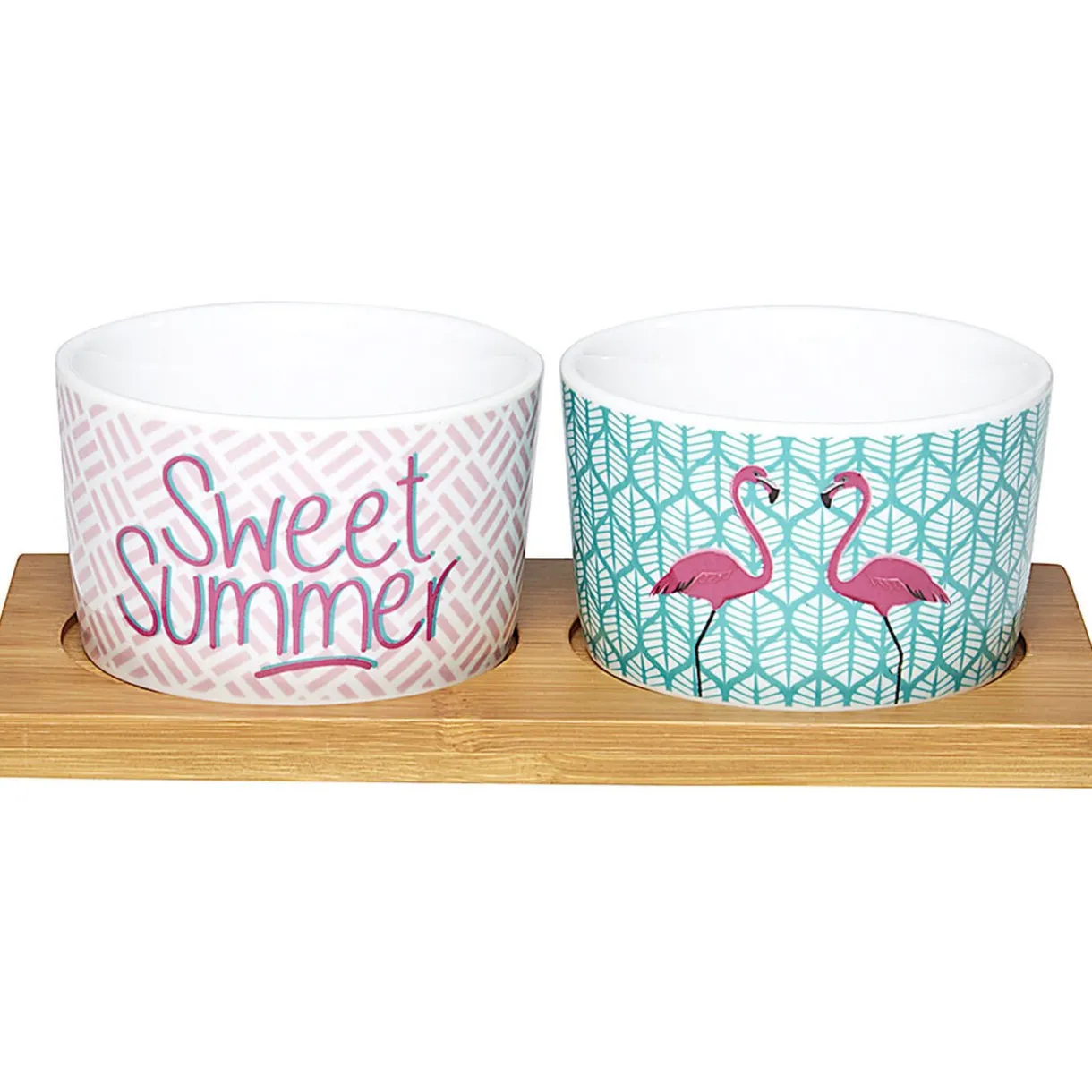 Plateau + 2 coupelles apéritif motif flamant rose^Gifi Online