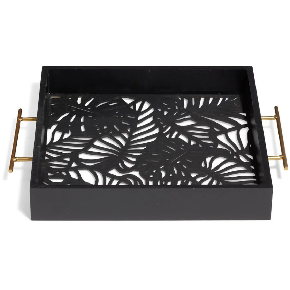 Plateau avec fond en verre laissant transparaître un joli motif végétal ajouré.