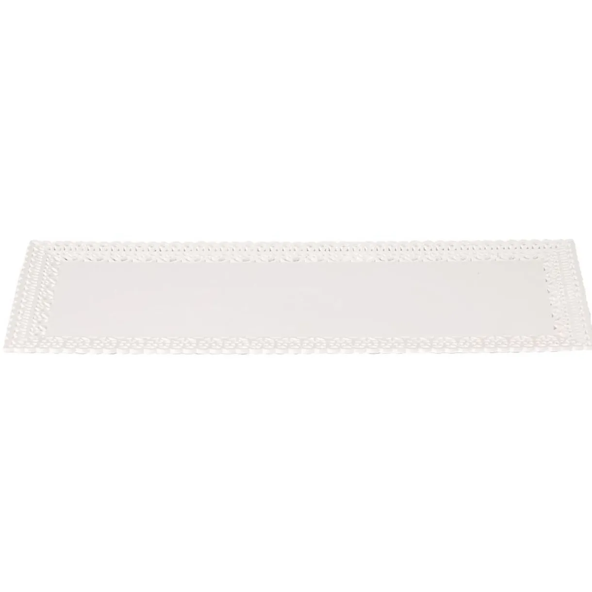 Plateau de présentation rectangulaire en plastique blanc avec joli décor en relief sur tout le contour.