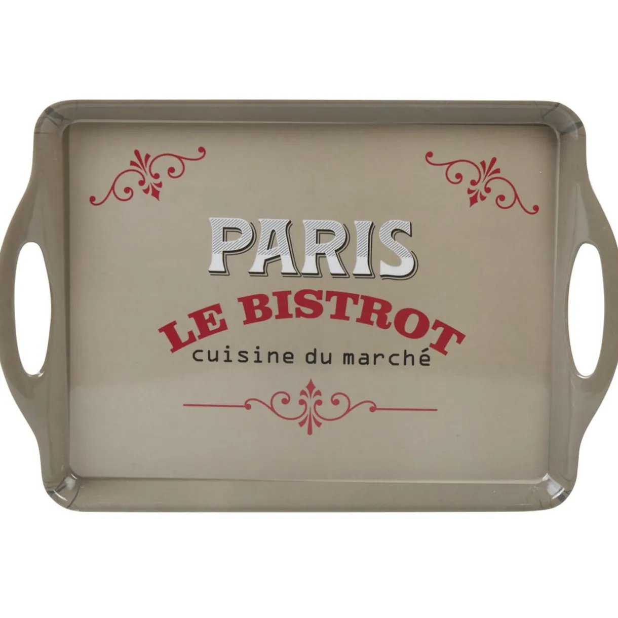 Plateau rectangulaire avec poignées « Paris le bistrot », dim. 50,5×34,5×3,3 cm, plastique melaminé.