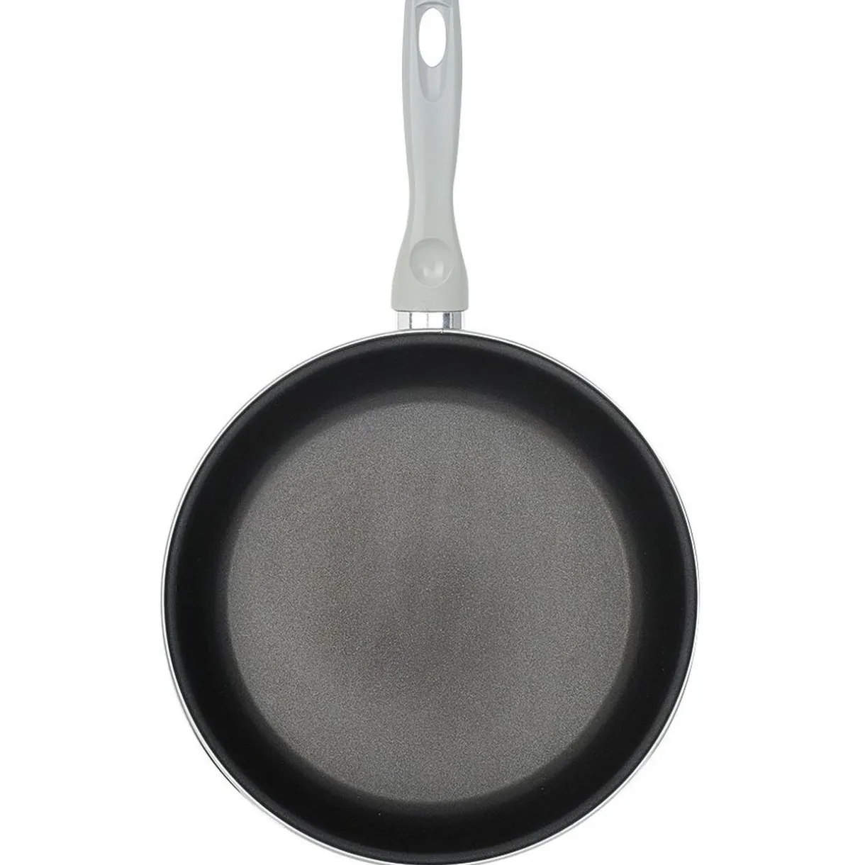 Poêle en acier émaillé blanche à l’extérieur et noire à l’intérieur avec poignée grise.