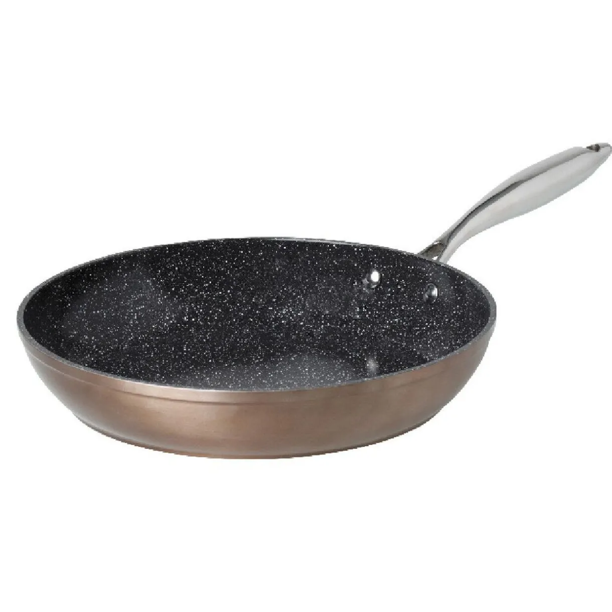 Poêle en acier inoxydable effet cuivre avec revêtement anti-adhérent effet pierre.