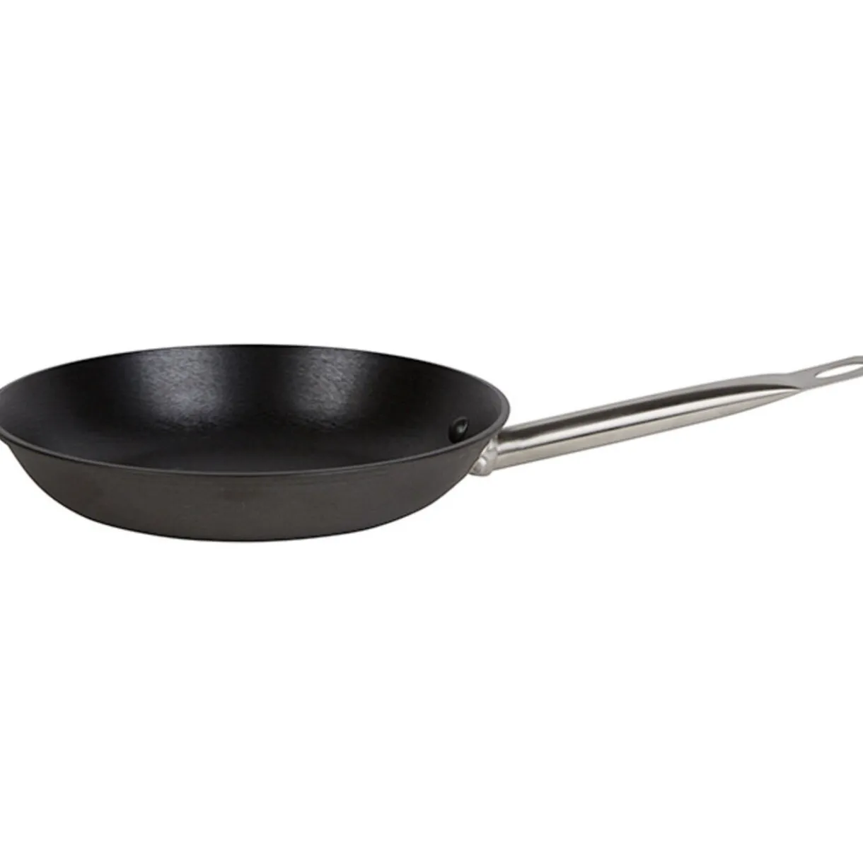 Poêle professionnelle en fonte ultra légère noire, ø 24 cm, tous feux dont induction. Revêtement en huile naturelle sans PFOA ou PTFE, poignée ergonomique.