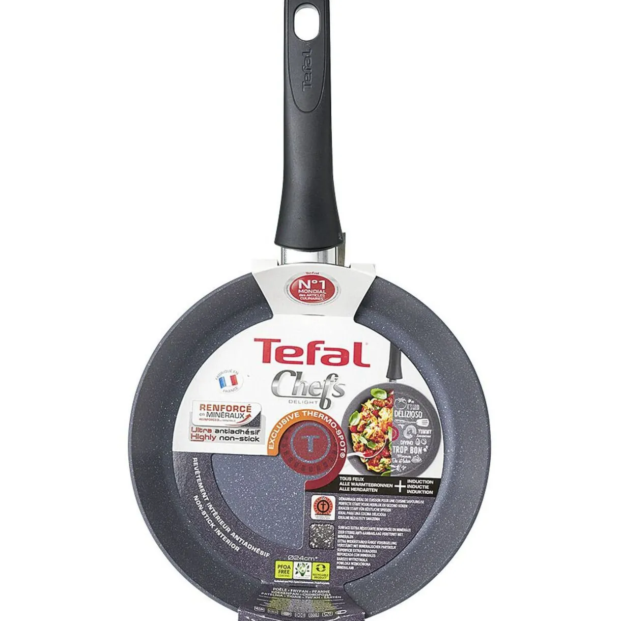 Poêle Tefal en aluminium effet pierre de couleur grise, idéale pour vos préparations culinaires quotidiennes.