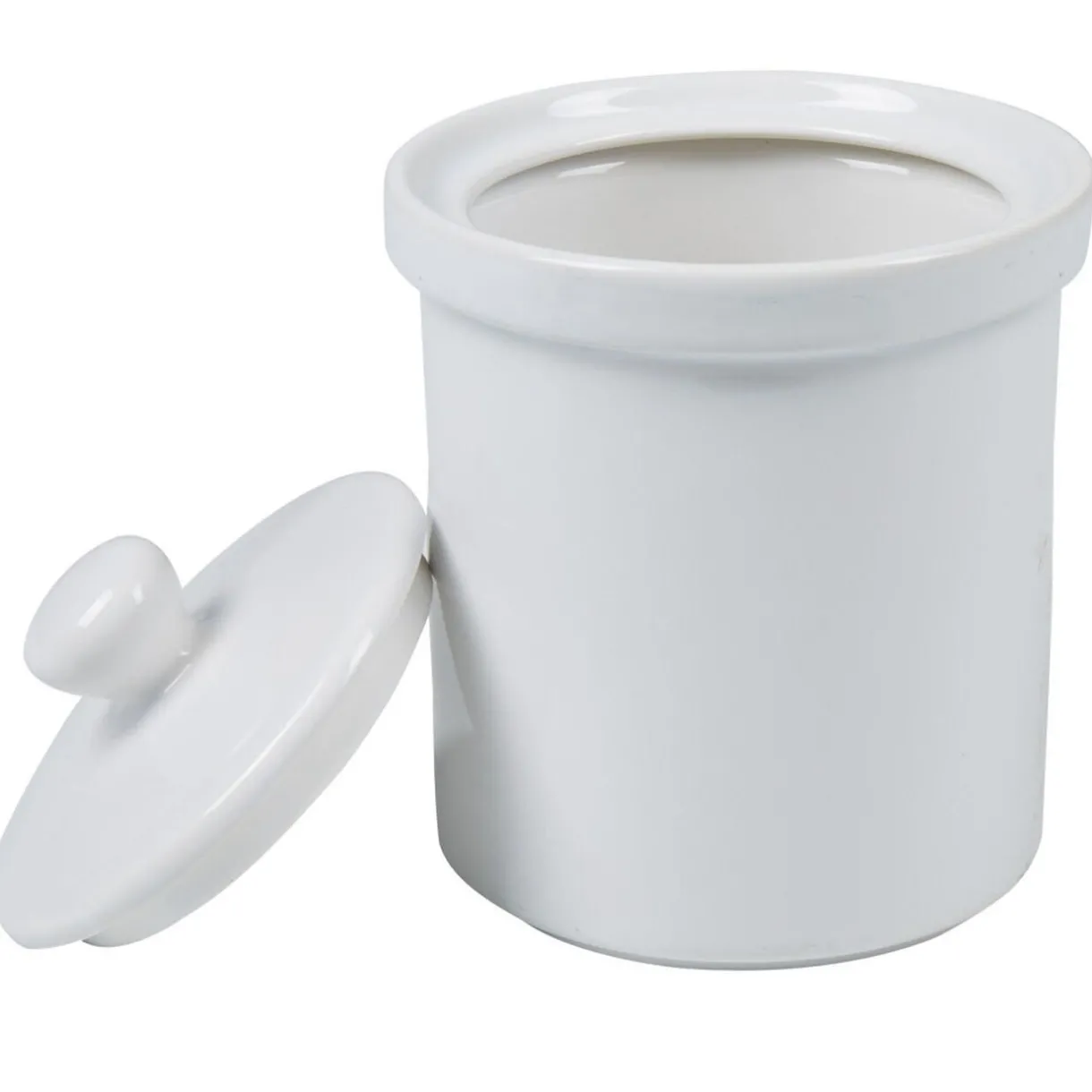 Pot avec couvercle en grès blanc, dim. Ø10,5xh.12 cm.