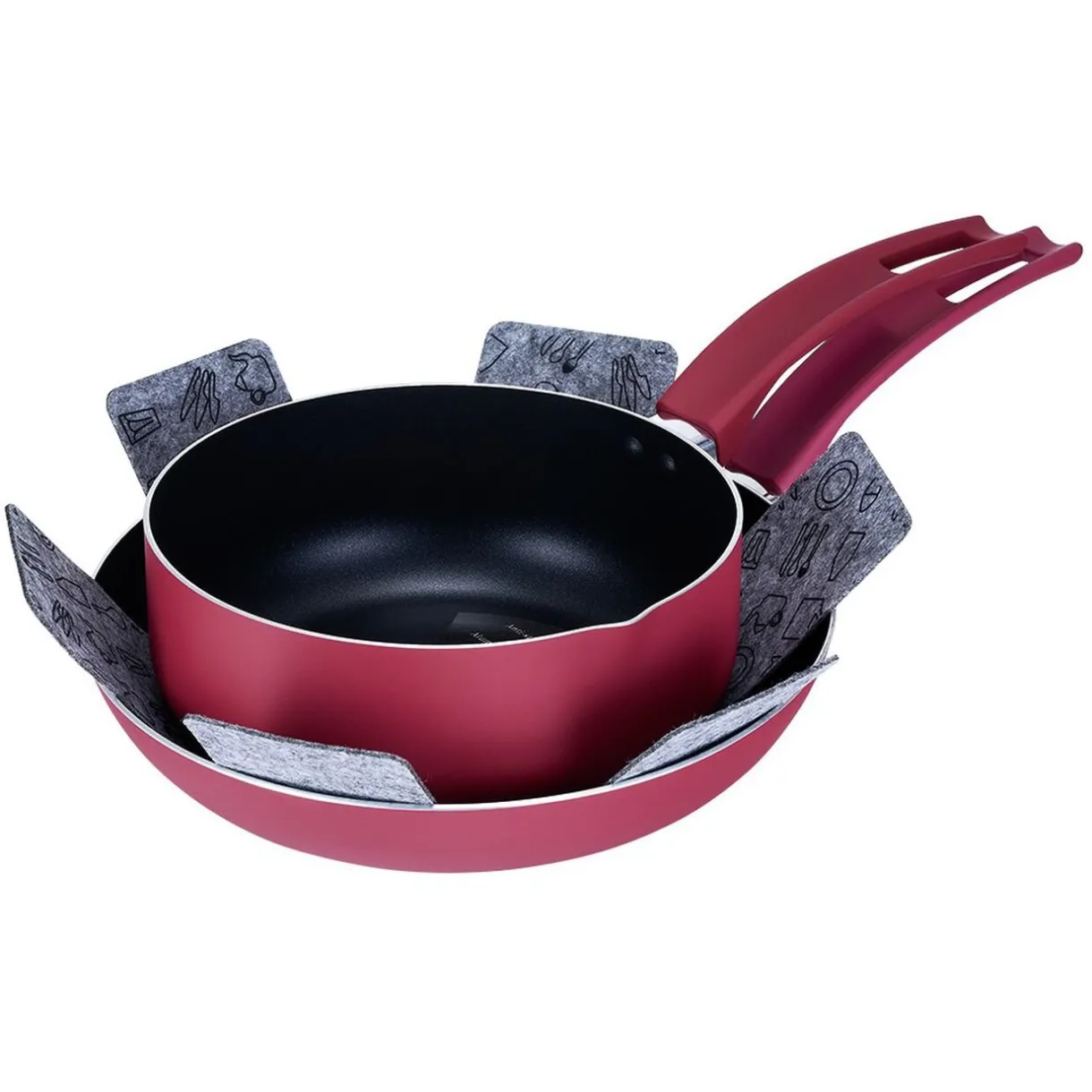 Avec ce lot de 2 protèges poêles en feutrine conservez vos poêles plus longtemps. En forme d’étoile ils s’adaptent aux différentes tailles de poêle.