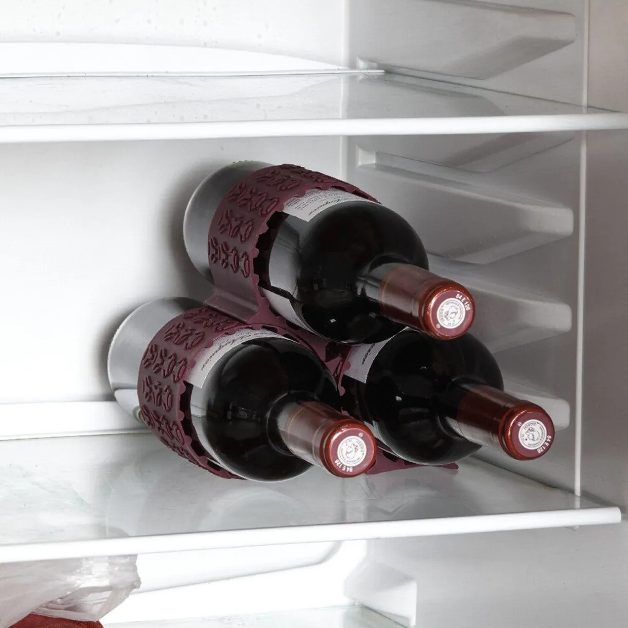 3 range-bouteilles en silicone, Ø 8 cm, antidérapant, stable et modulable. Utilisation possible au frigo.