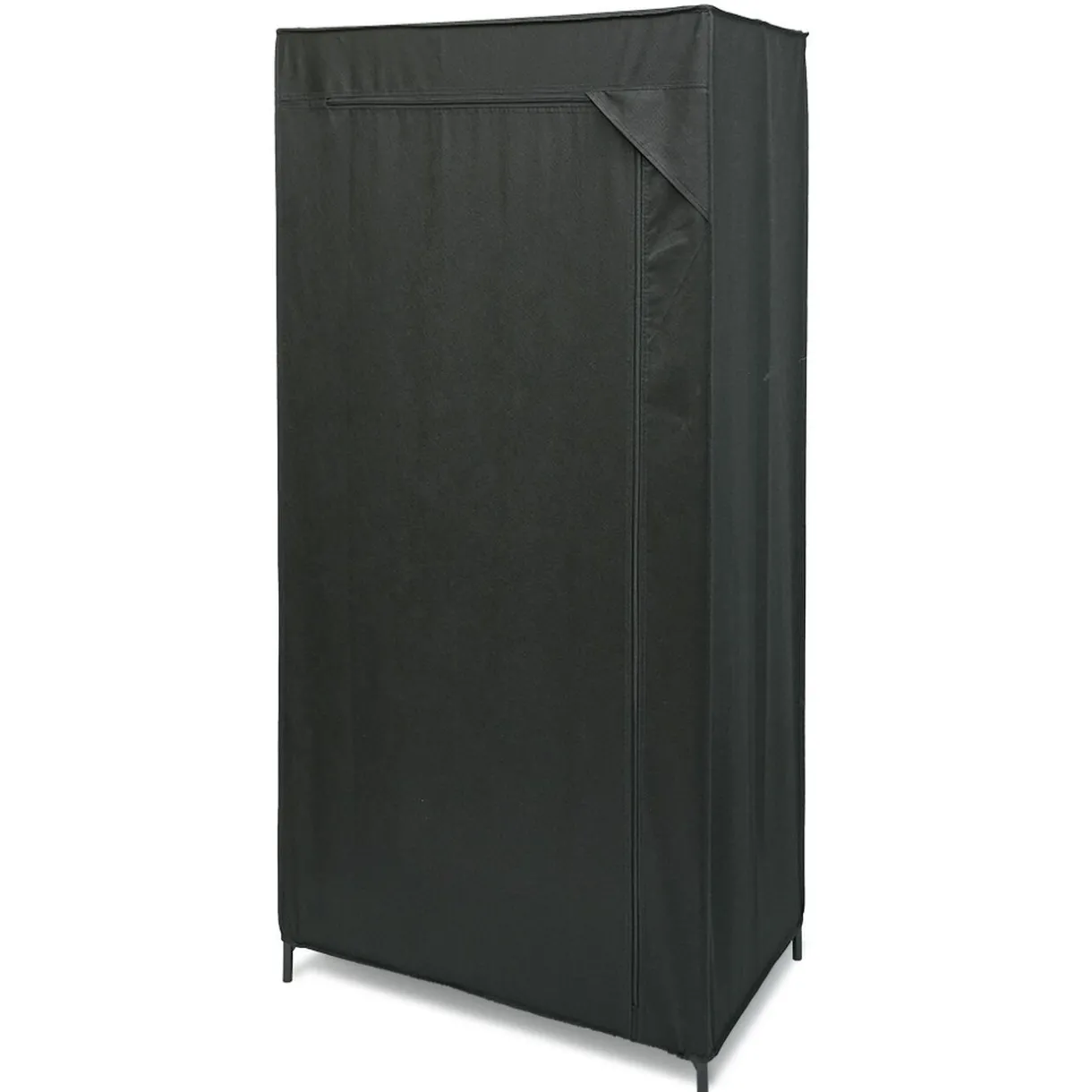 Armoire penderie en tissu noir, facile à monter et déplacer.