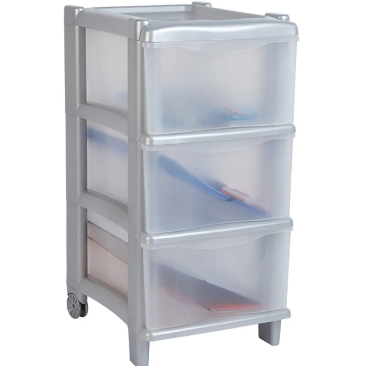 Bloc 3 tiroirs, dim. 29x36x60 cm, plastique, 2 roulettes.