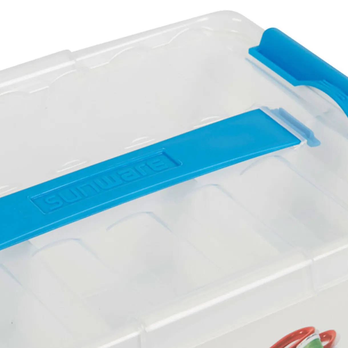 Boîte de rangement spécial couture 6 L, dim. 30x20x14 cm, plastique. Nombreux compartiments, poignée et fermeture par clip.