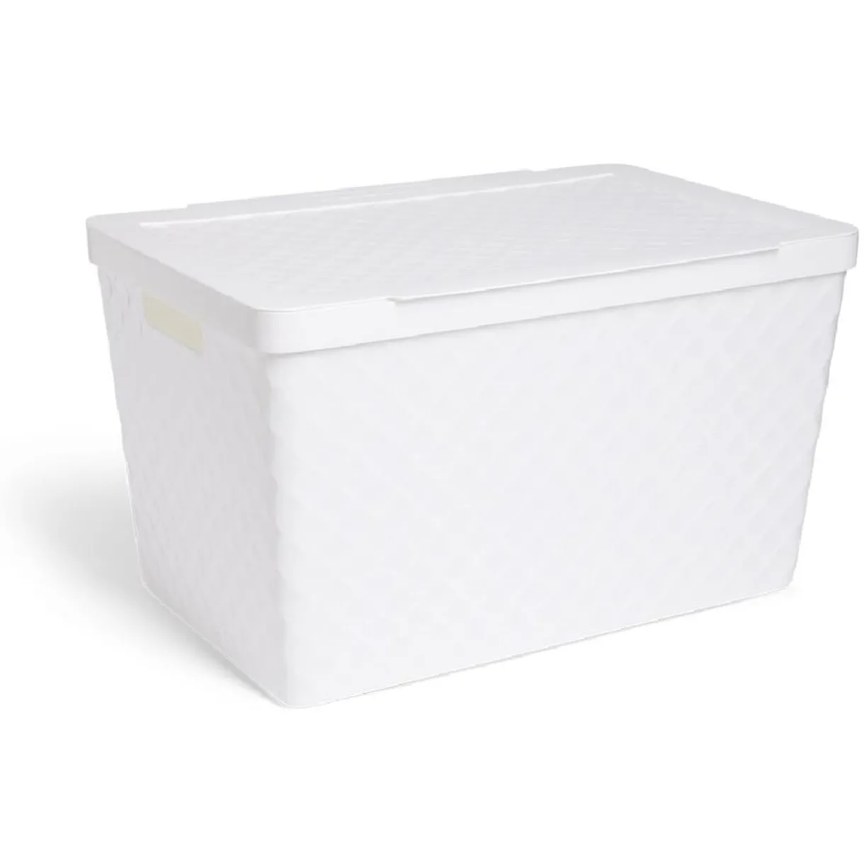 Boîte de rangement en plastique gris de 51L aux dimensions généreuses de 56x36x32cm.