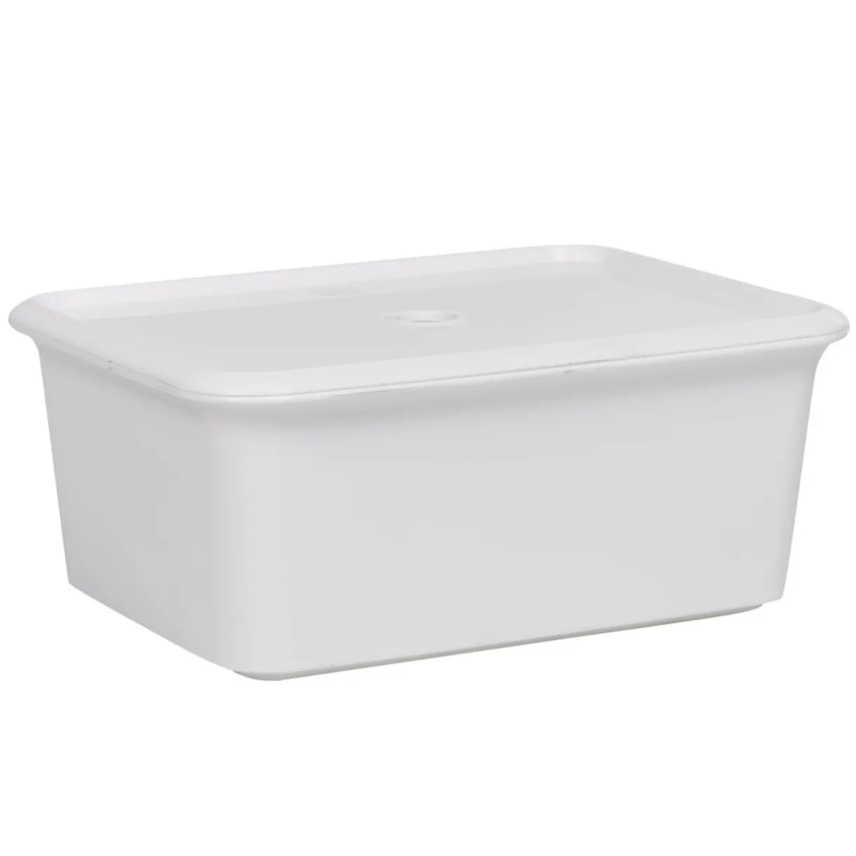 Boîte de rangement blanche avec couvercle.