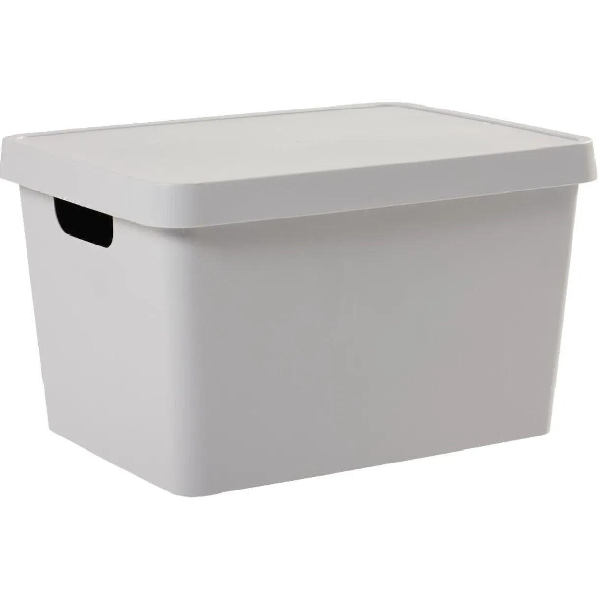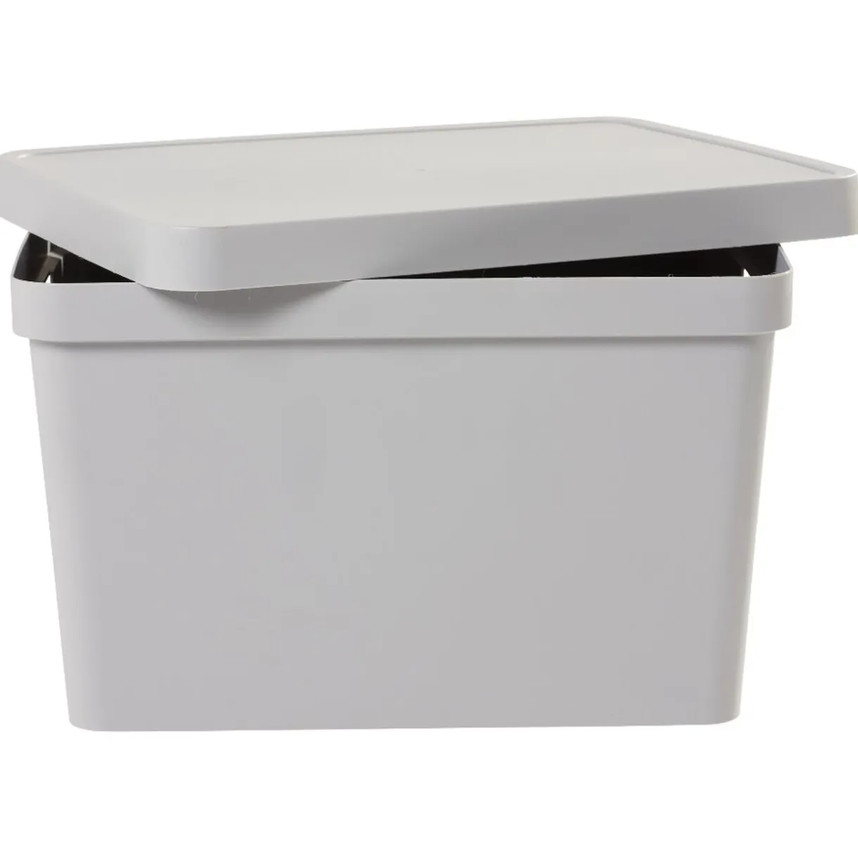 Cette boîte en plastique gris avec couvercle sera idéale pour optimiser votre rangement.