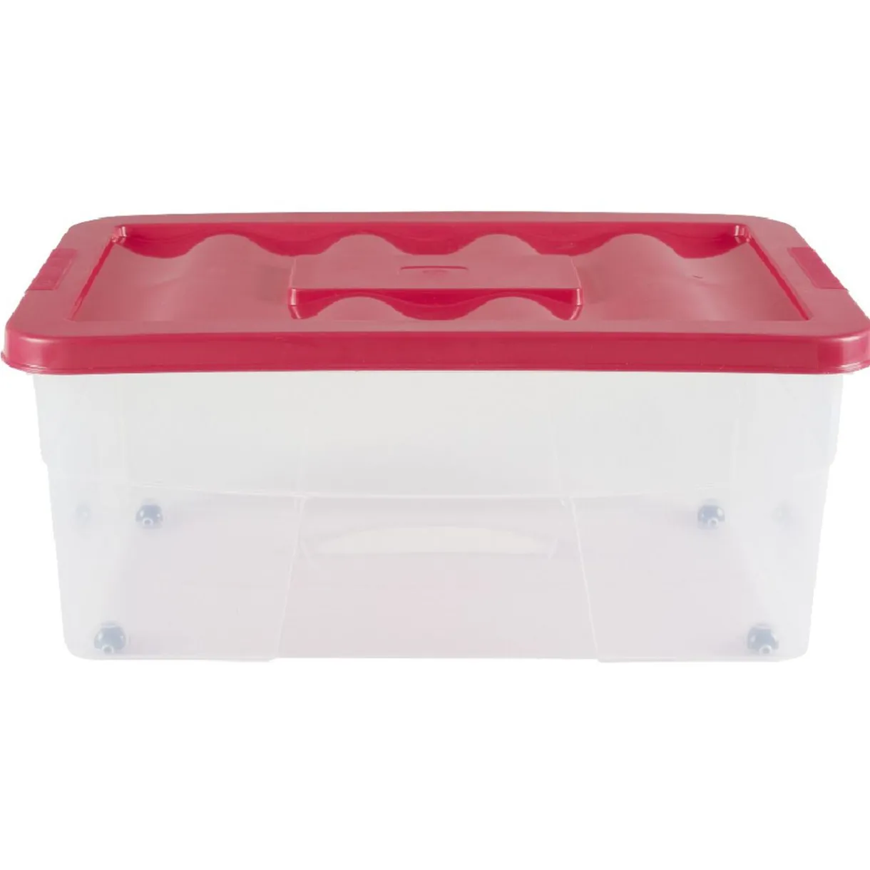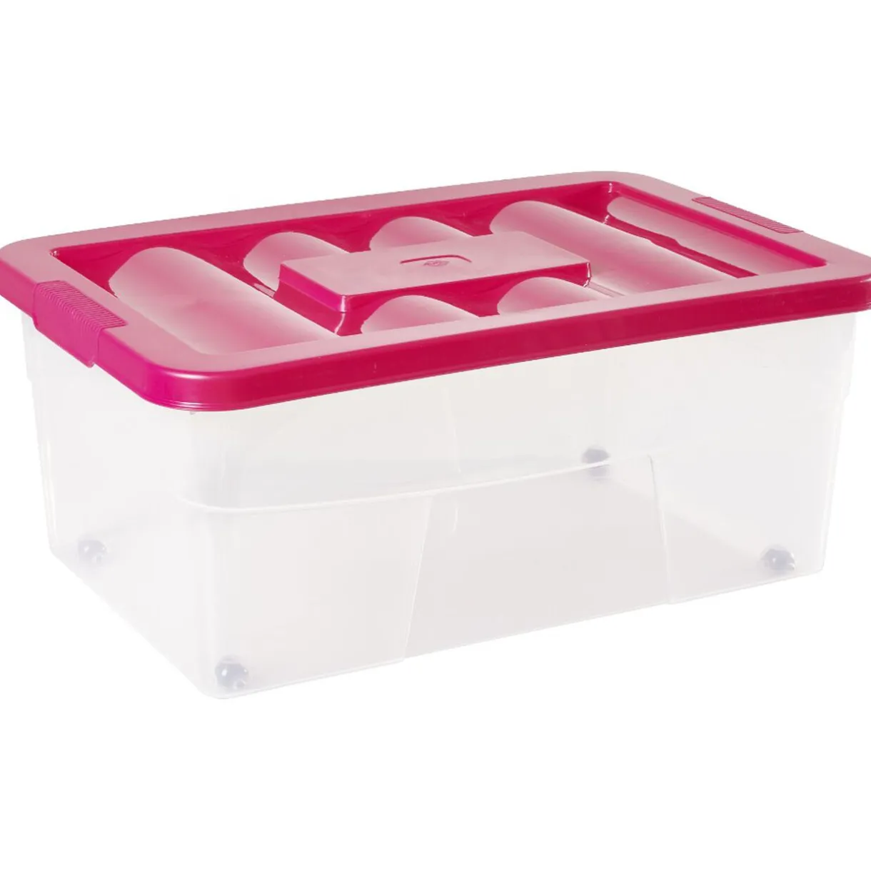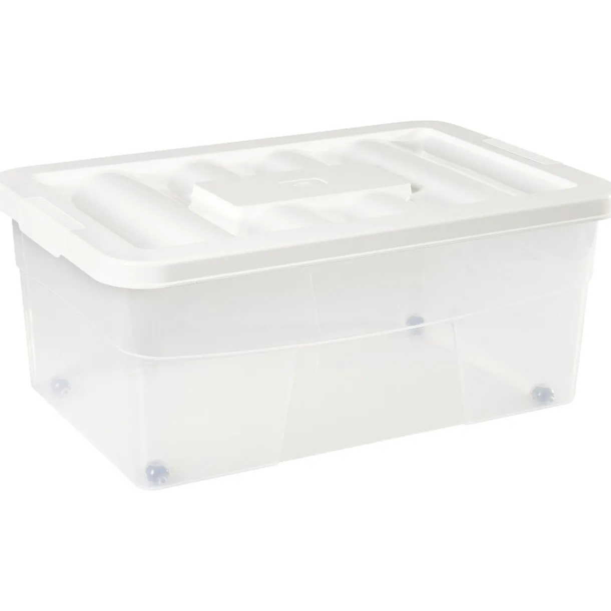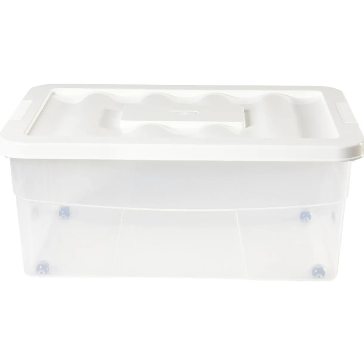 Optimisez votre rangement grâce à cette boîte transparente sur 4 roulettes avec couvercle.
