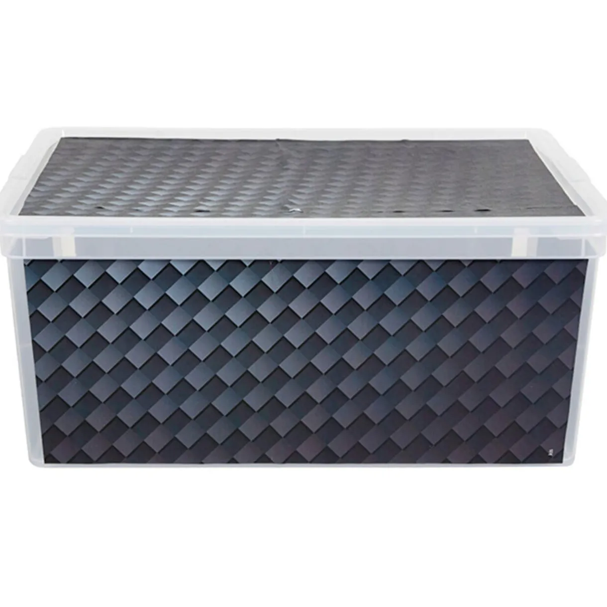 Boîte de rangement design carbone, dim. 40x34x17 cm, plastique.