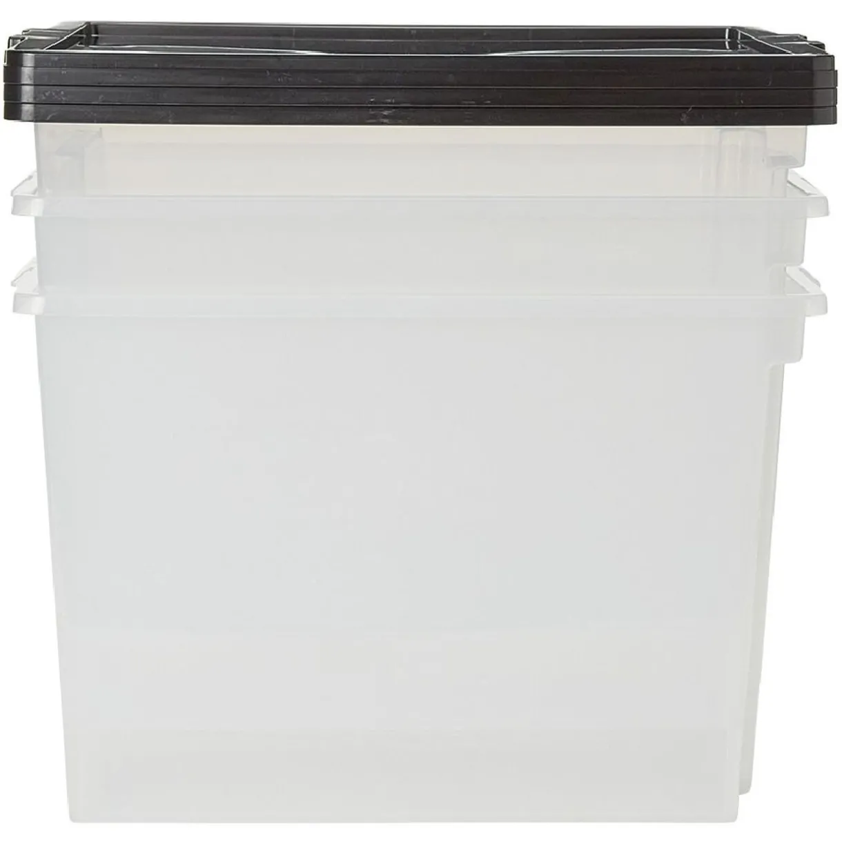 Boîte transparente et noire en plastique pour faire du rangement dans vos affaires.