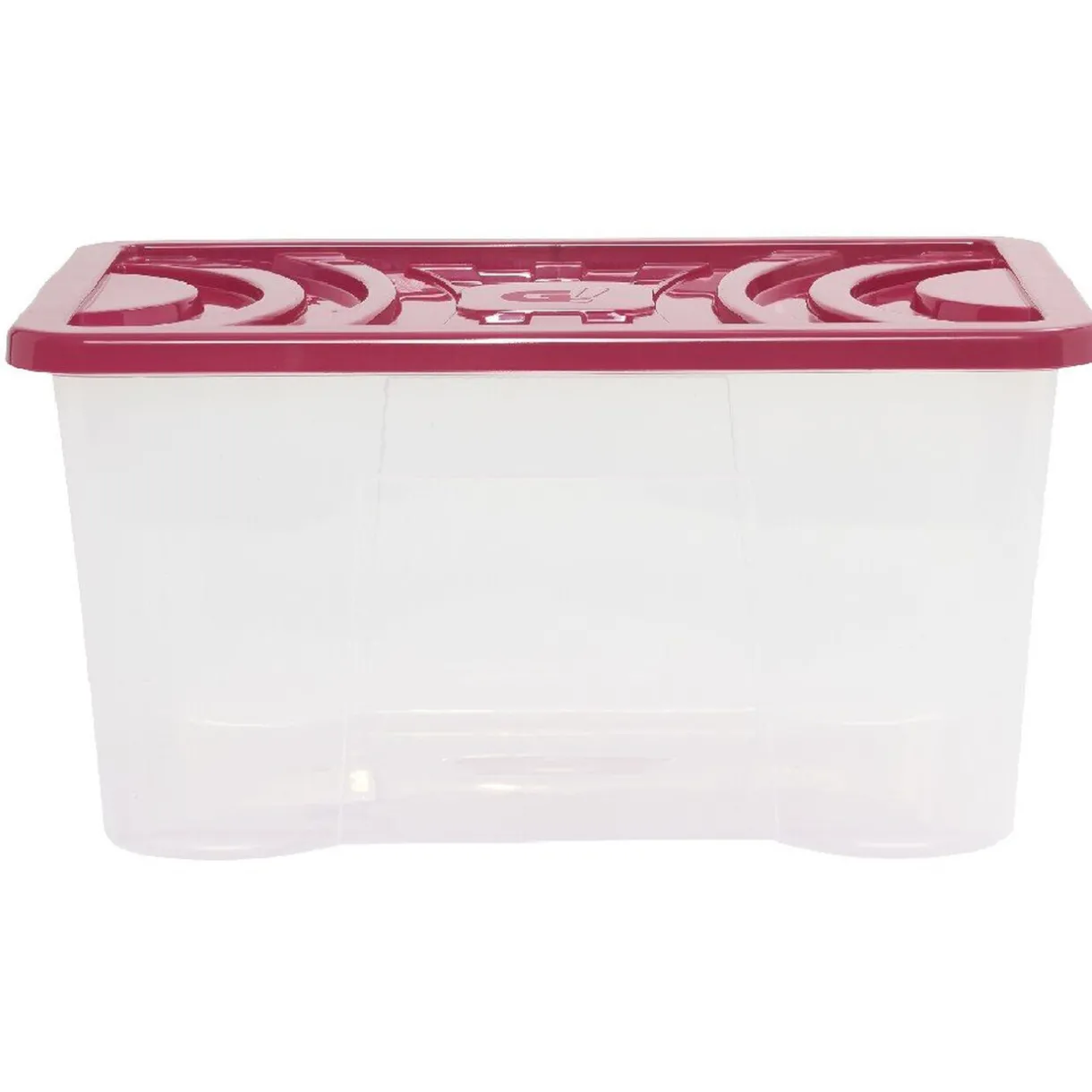 Box de rangement transparent d’une contenance de 60 L, avec couvercle uni bleu ou violet. Disponibilté selon arrivage.