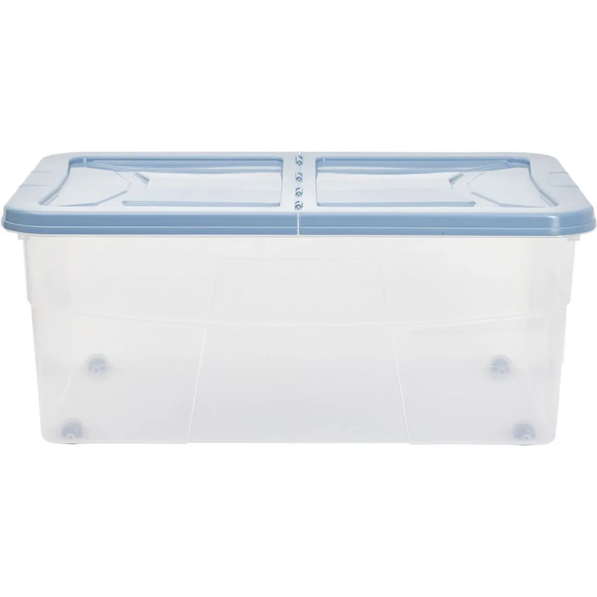 Box dessous de lit en plastique bleu, idéale pour optimiser votre rangement.