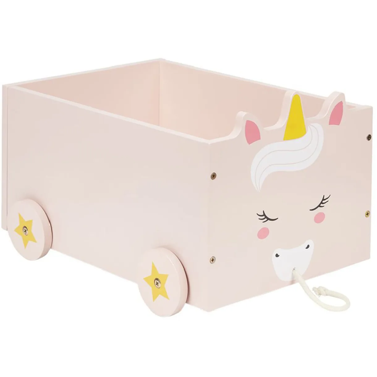 Ce chariot en bois est idéal comme rangement pour la chambre d’un jeune enfant.